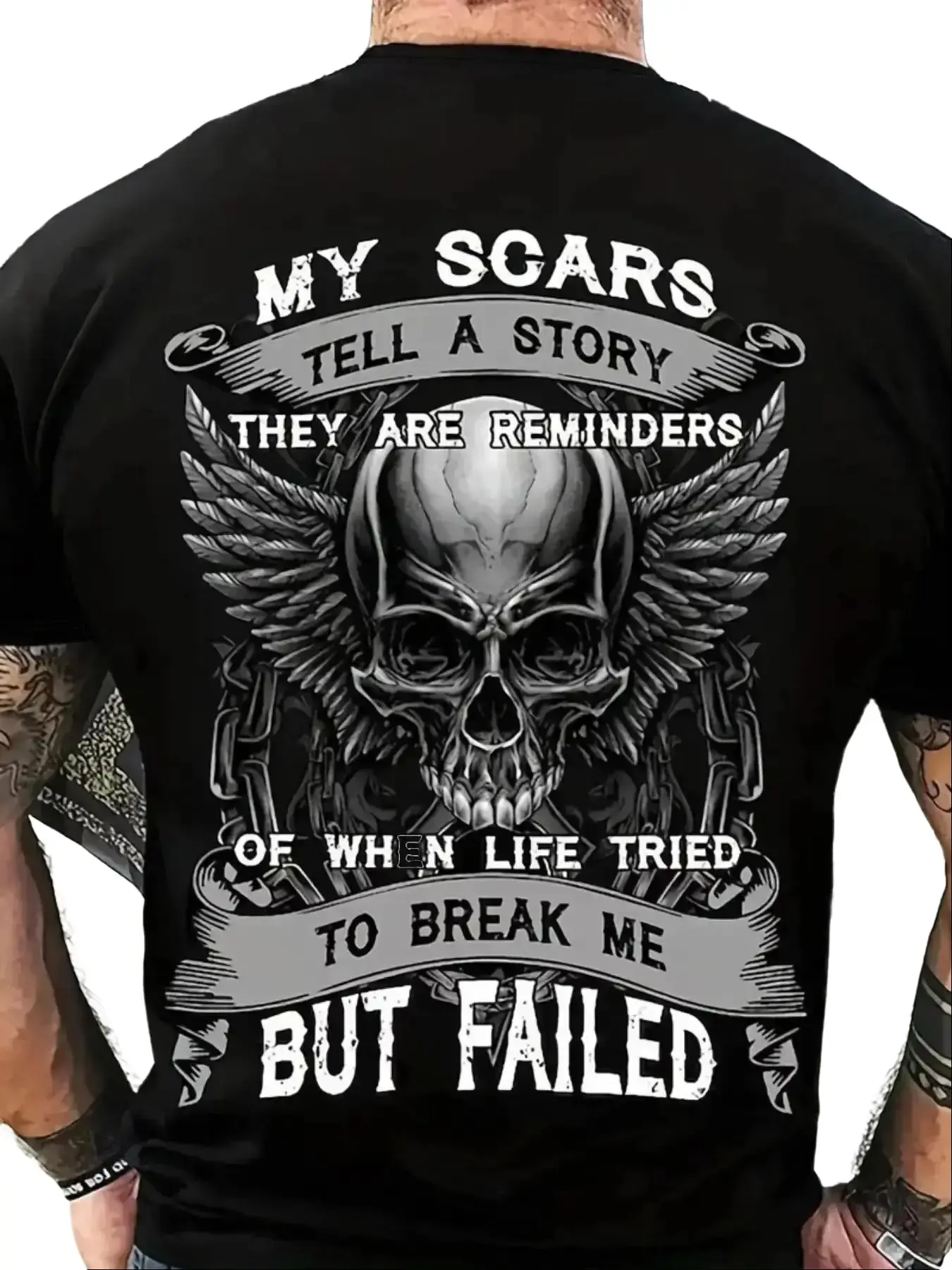 Men's Skull & Letter Graphic Round Neck Tee, Regular Fit Short Sleeve Crew Neck T-Shirt for Summer, Casual Streetwear Men's Top for Daily Wear