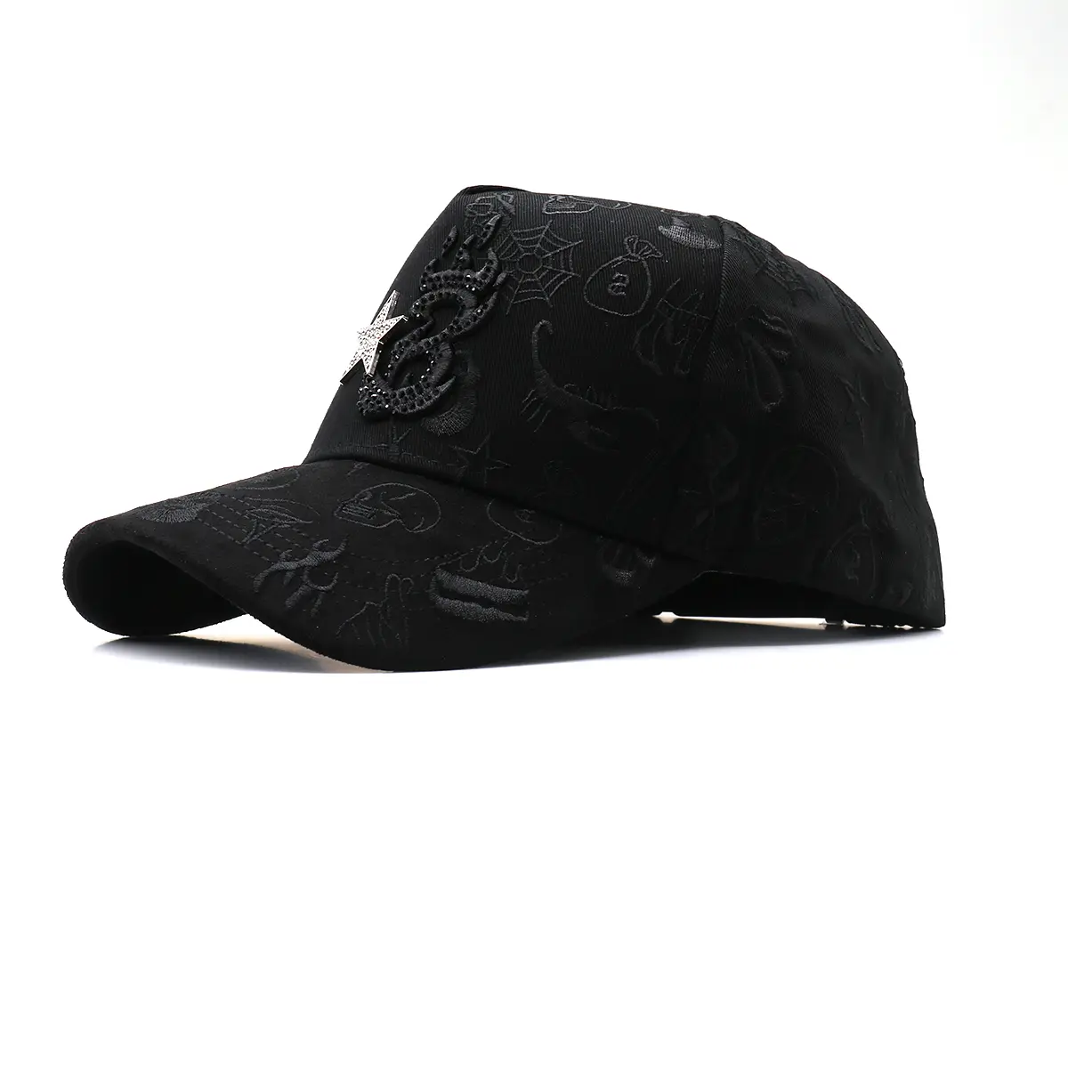 The hat features a striking rhinestone embroidery that adds a touch of glamour. The Gothic aesthetic gives it a unique edge, making it stand out in any crowd. This cap is not just a hat; it's a fashion accessory that complements your outfit.