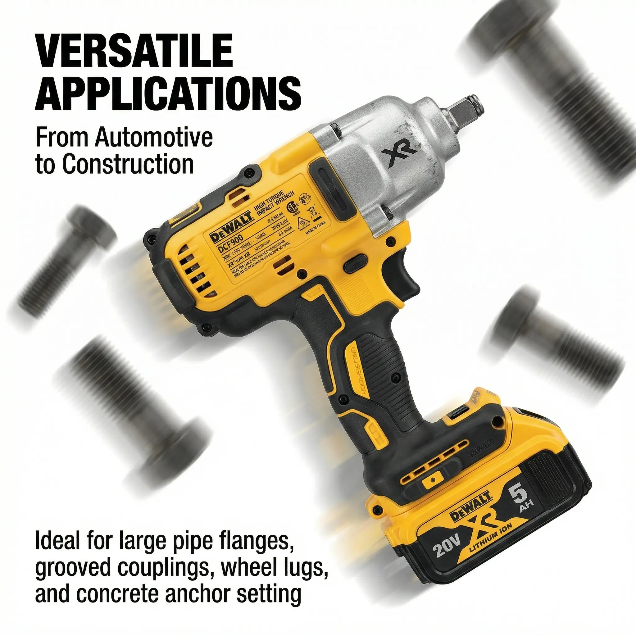 Dewalt DCF900NT Electric Impact Wrench With Battery Charger And TSTAK Case For Mechanical Work Tool With 20V Power And LED Light