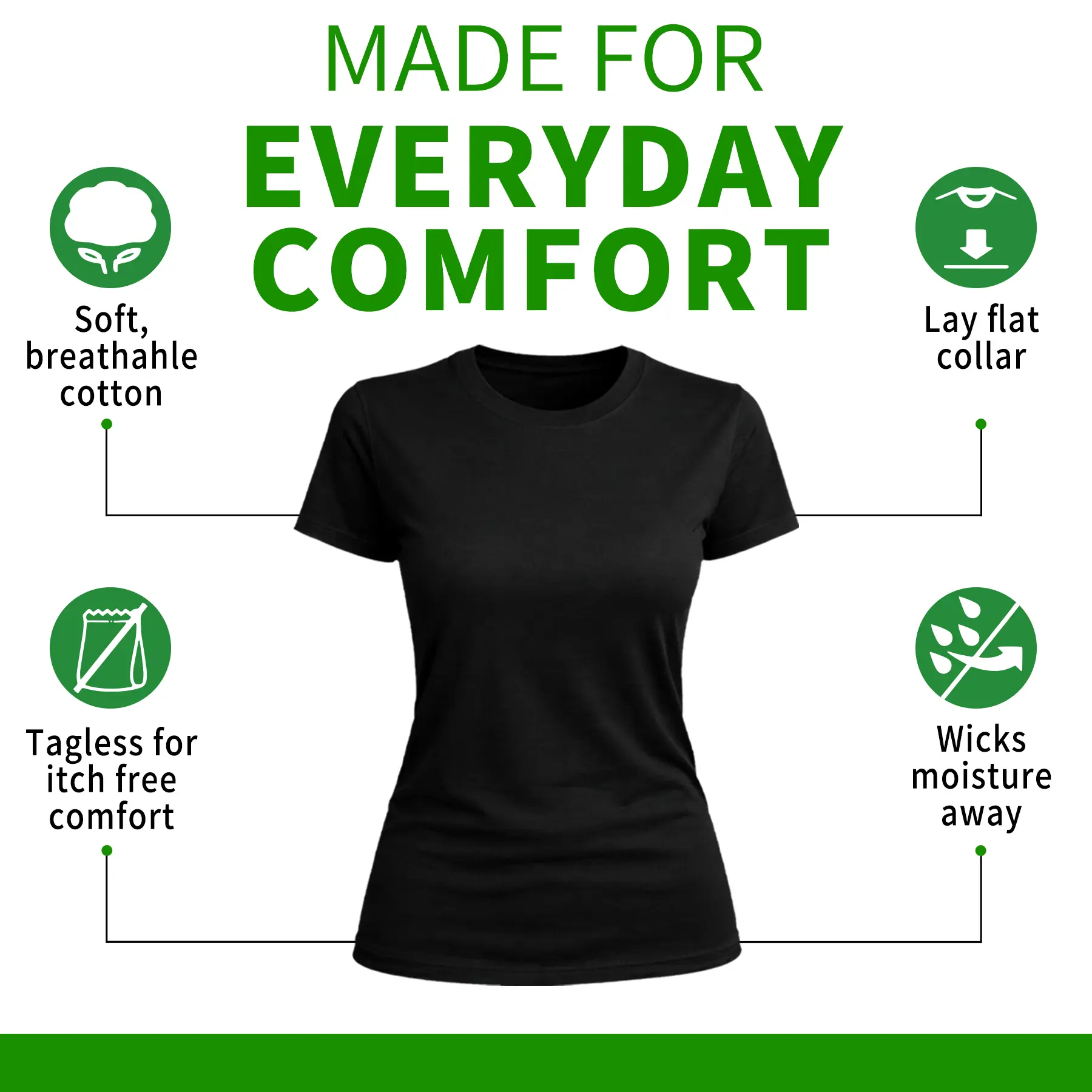 Elevate your wardrobe with our Crewneck T-shirts. These solid black t-shirts are perfect for daily wear, active use, and leisure. Crafted from a cotton blend fabric, they are durable and shape-retaining. Less prone to wrinkles, they are easy to wash. Ideal for summer and spring seasons. A great Mother's Gift.