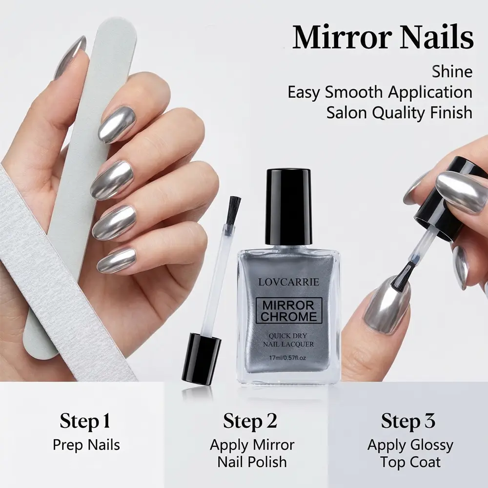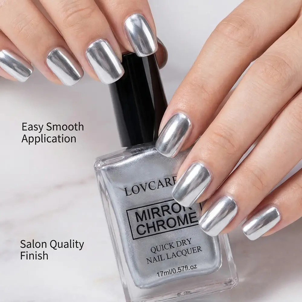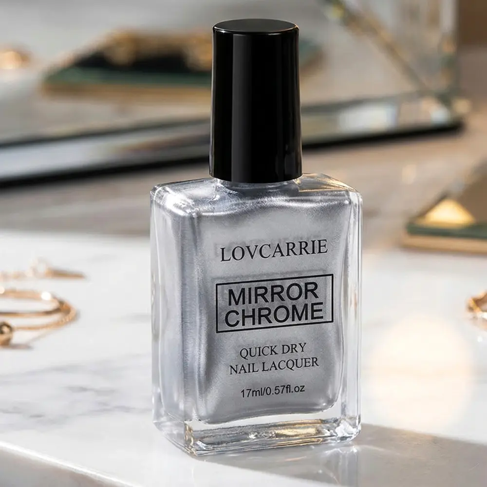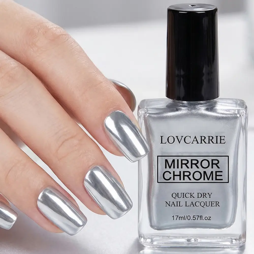 LOVCARRIE Nail Polish in Metallic Silver is ideal for DIY nail care. This product is designed for those who love creating stunning nail art. It offers a quick-drying formula, eliminating the need for a UV lamp. With a convenient 17ml / 0.57 fl.oz size, it's perfect for both beginners and professionals. Elevate your nail game with this versatile polish.