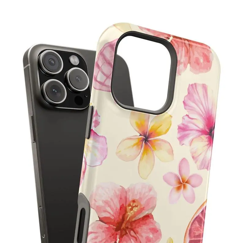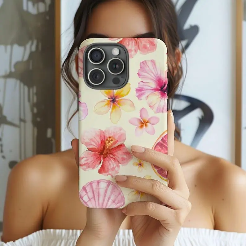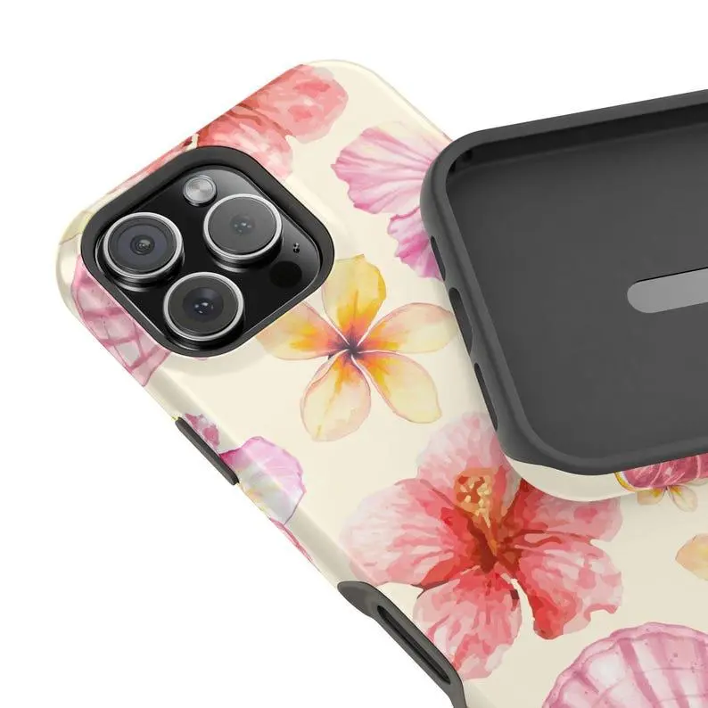 Hibiscus & Seashell Phone Case – Cute Summer Floral Design with Pastel Beach Vibes, Trendy Girly Aesthetic for iPhone