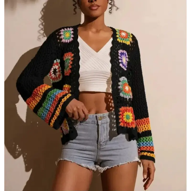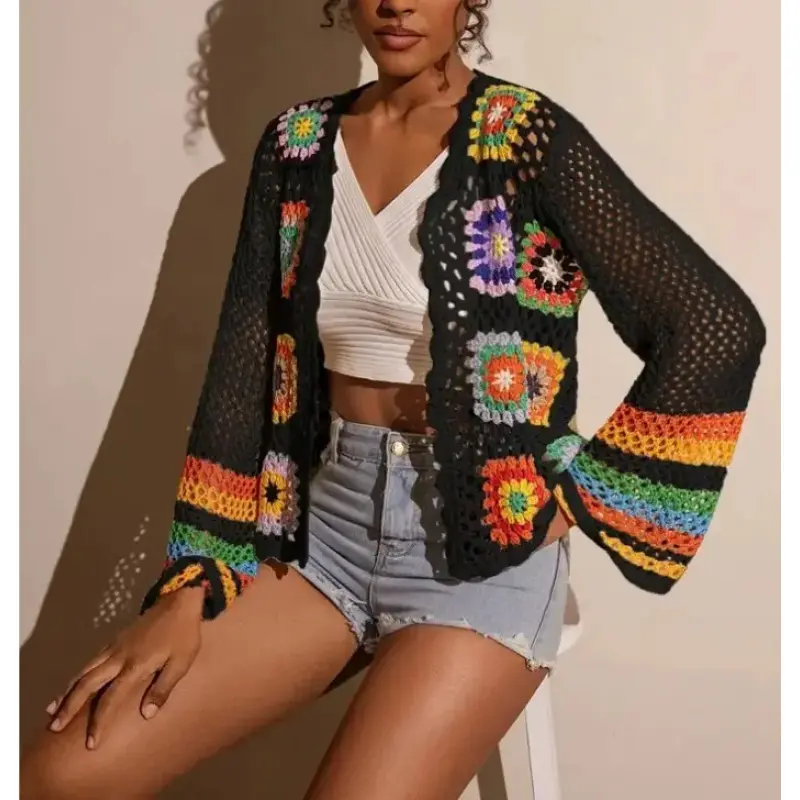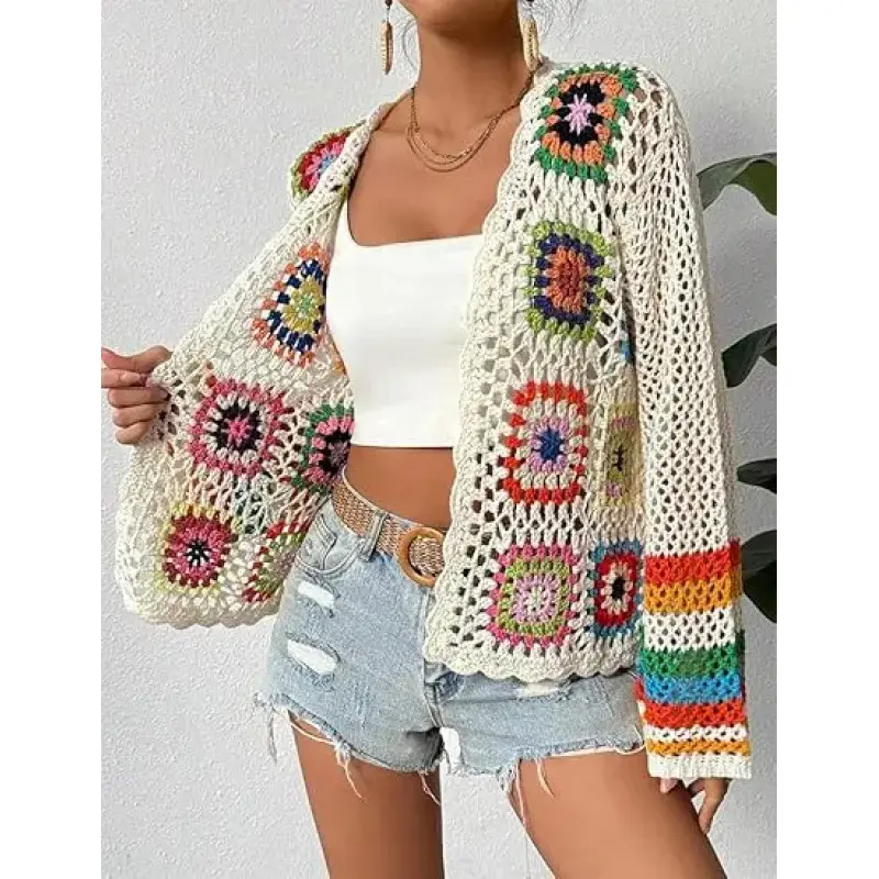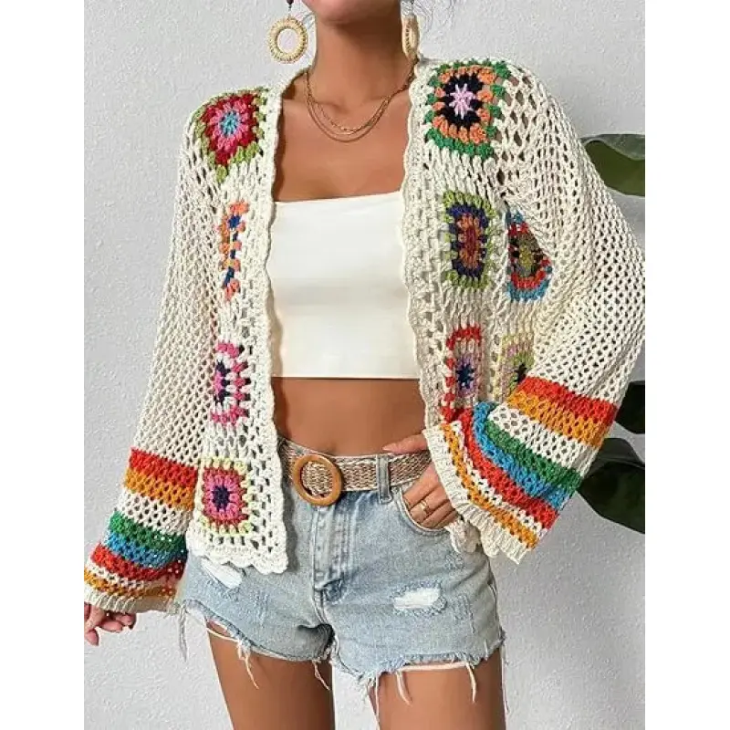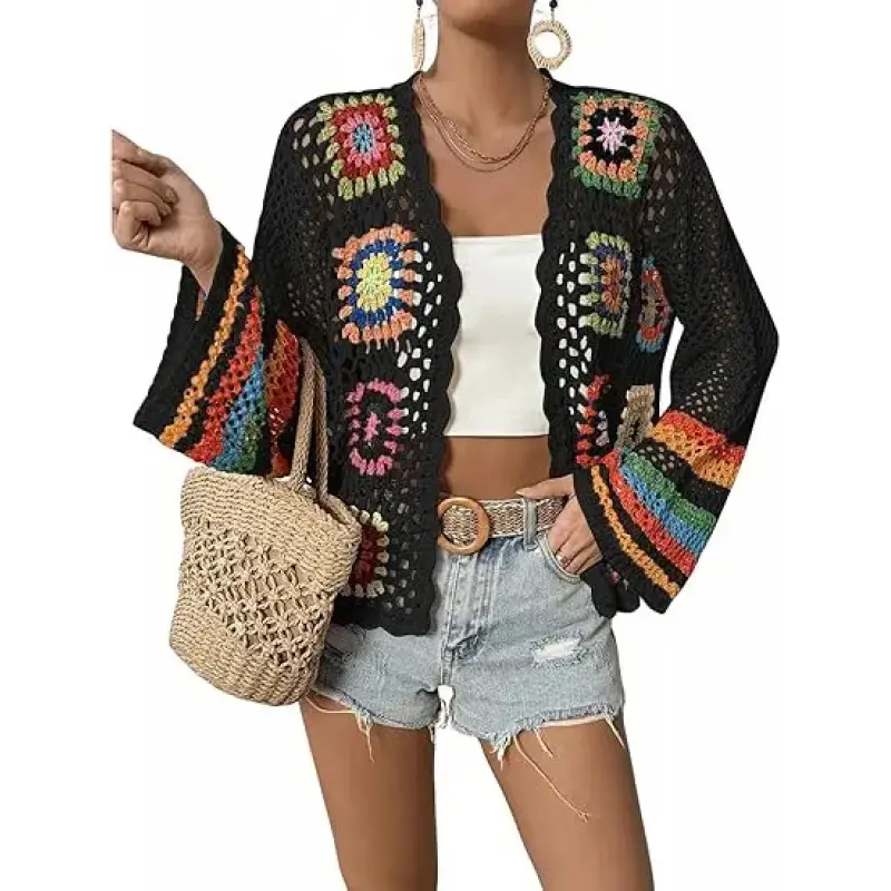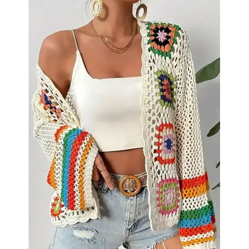 Style: Casual loose fit trendy vintage hollow out boho crochet cardigans