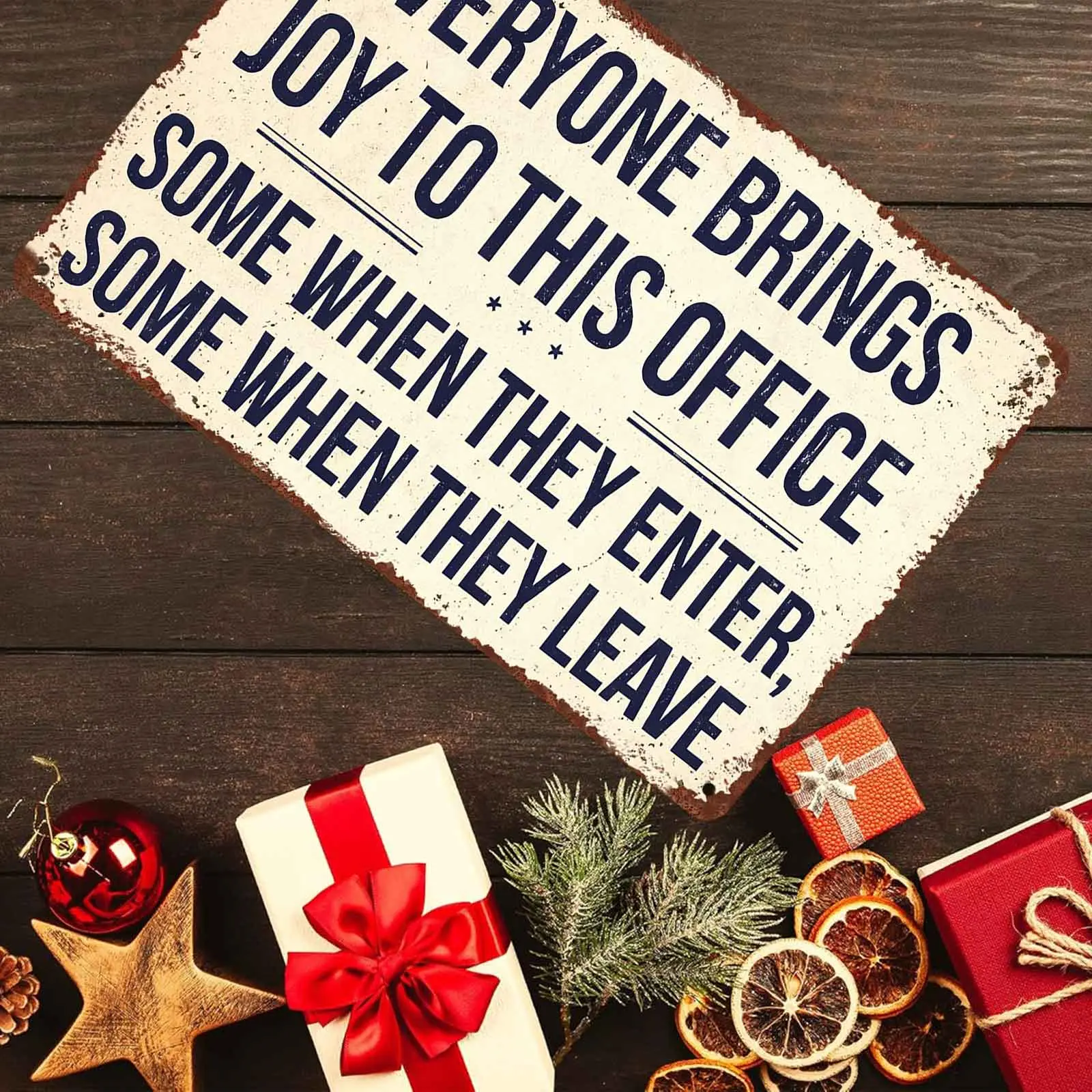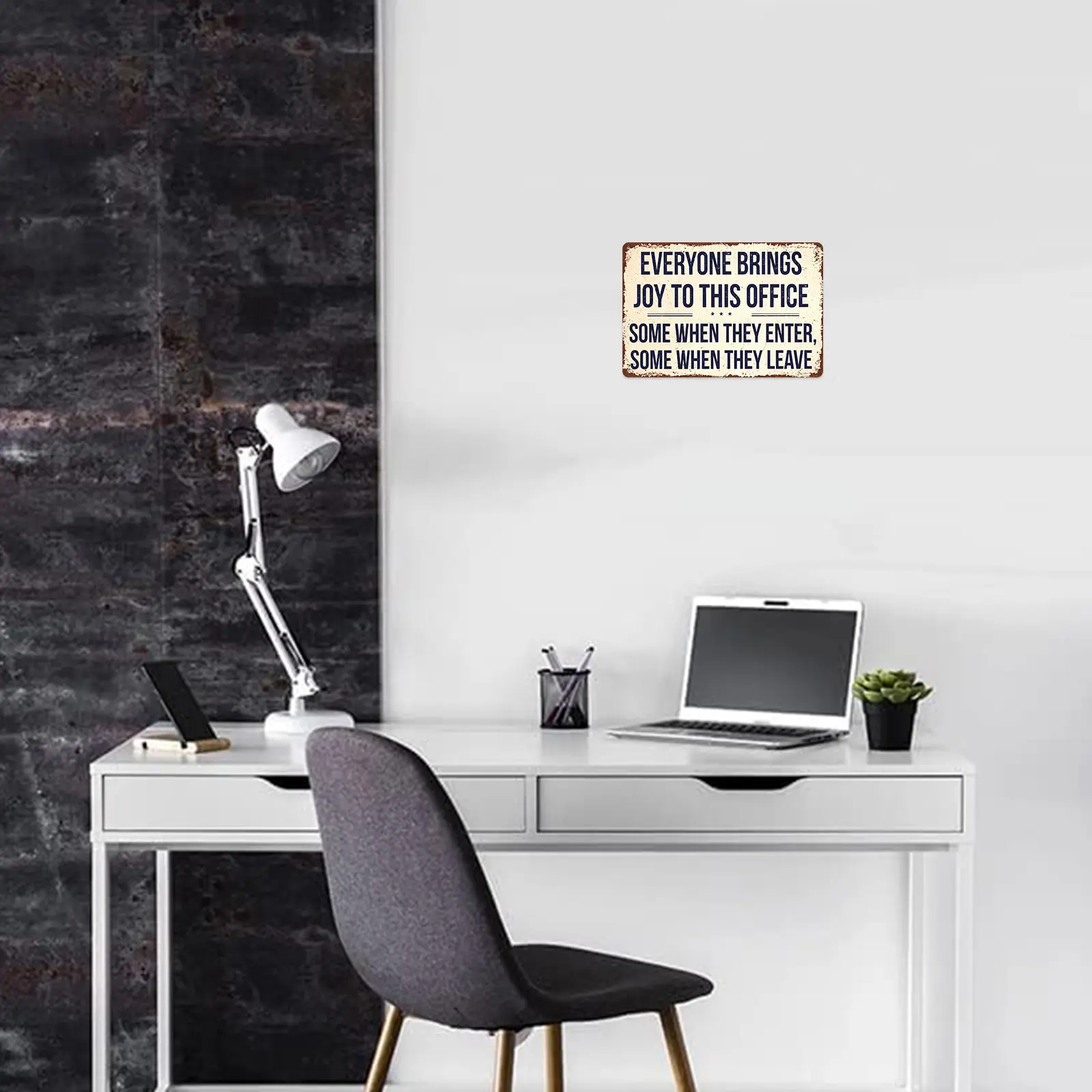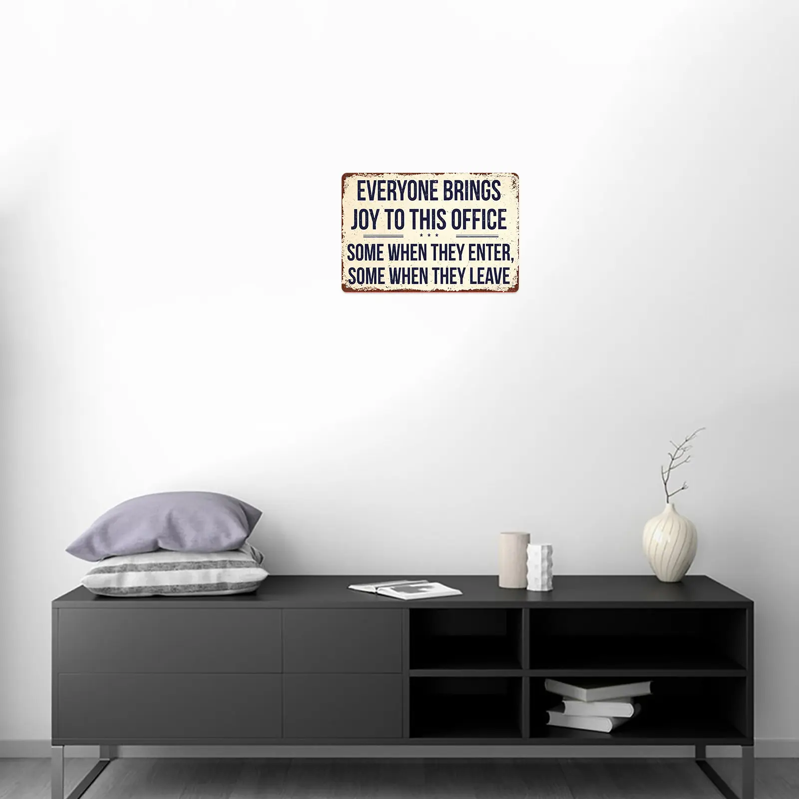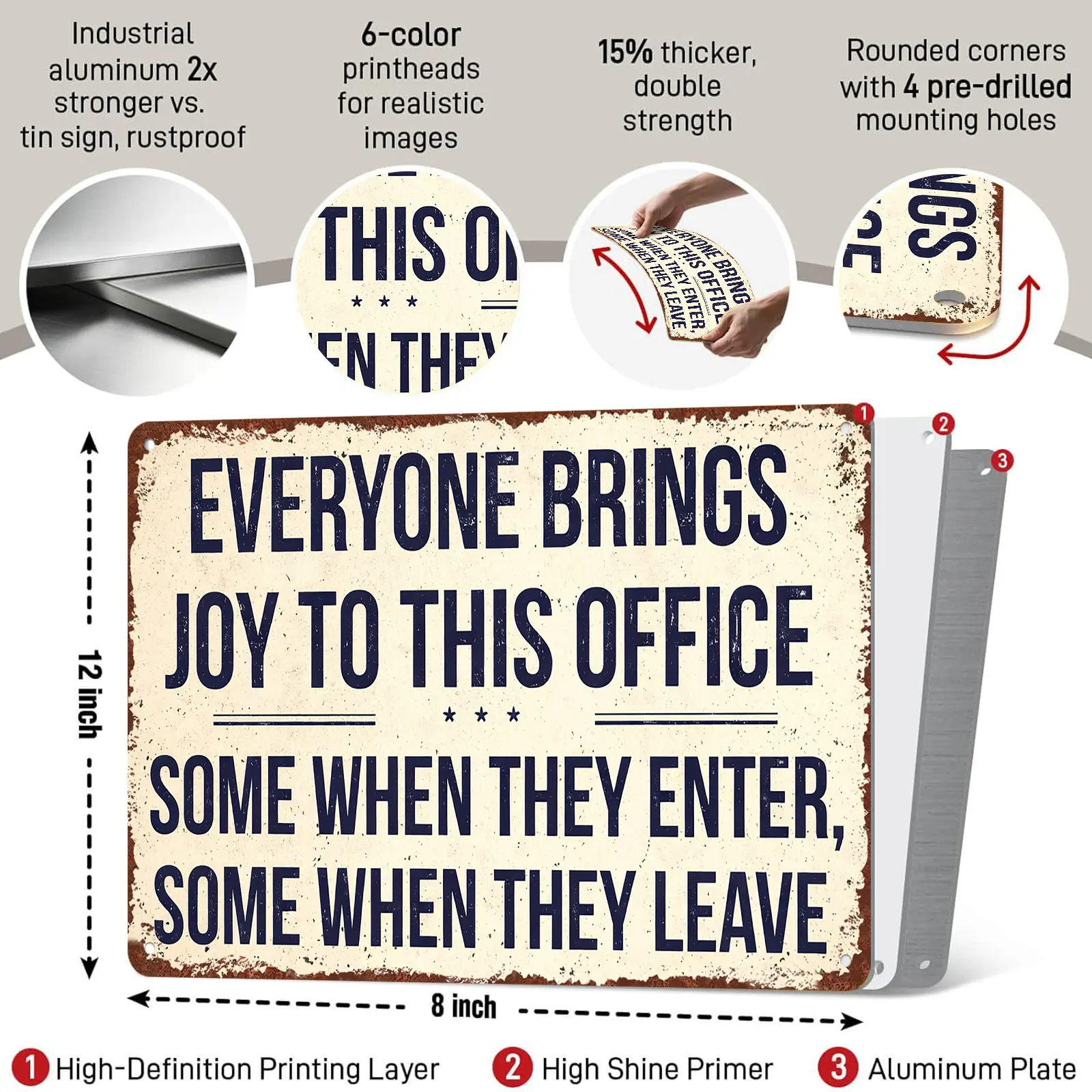 Everyone Brings Joy To This Office Some When They Enter Some When They Leave 12x8 Inch Aluminum Metal Sign - Funny Sarcastic Office Wall Decor for Workspace, Cubicle, Break Room - Retro Rustic Tin Sign Gift for Coworkers & Humor Lovers