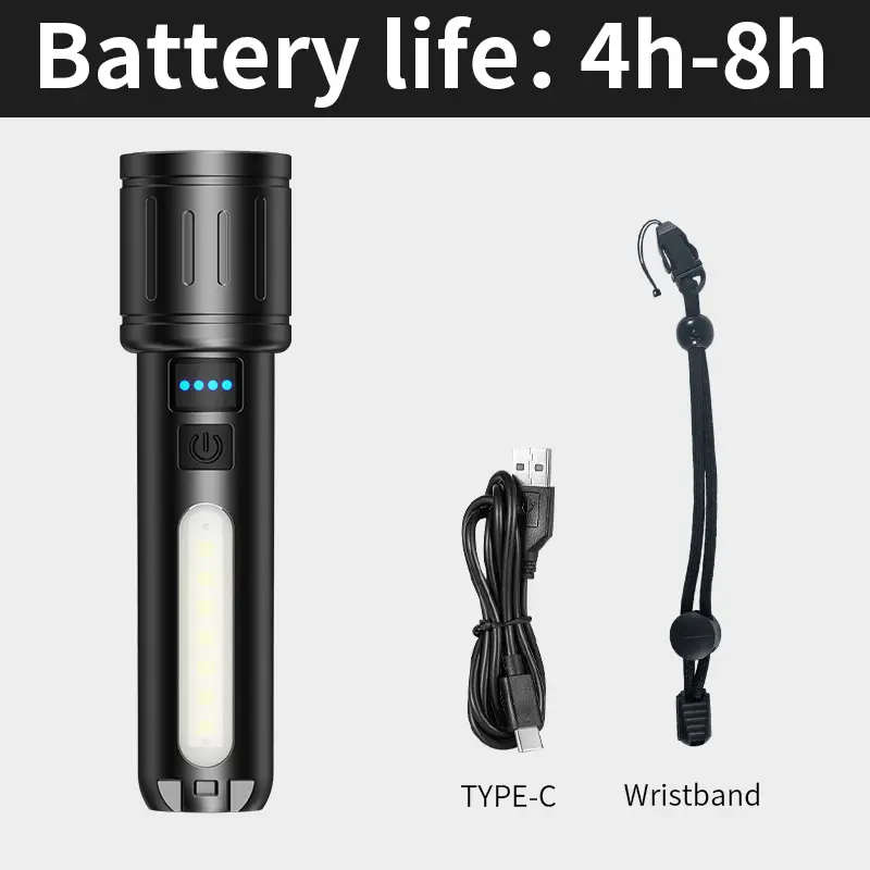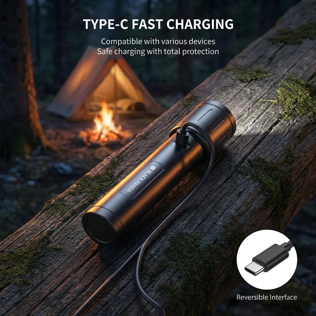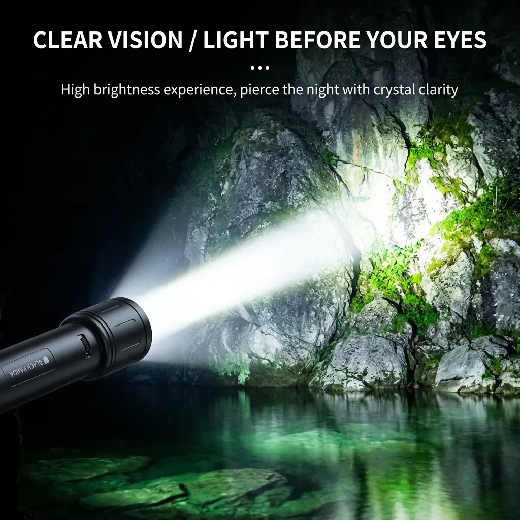 Black Panda Portable Flashlight 500 Lumens 500m Beam Mechanical Zoom Multiple Modes USB Rechargeable