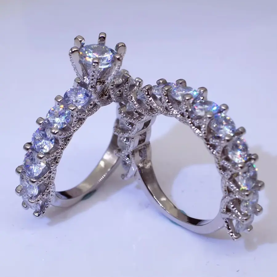 Womens 1.5 Carats Sterling Silver Bridal-Set Engagement Wedding Ring Cubic Zirconia 8MM