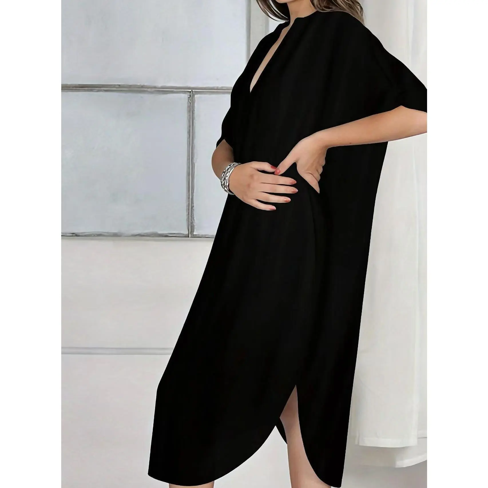 Women's Casual Loose-Fit V Neck Top, Hollow Out Design, Polyester Knit Fabric, Hand Washable, All Season Wear, Knitwear