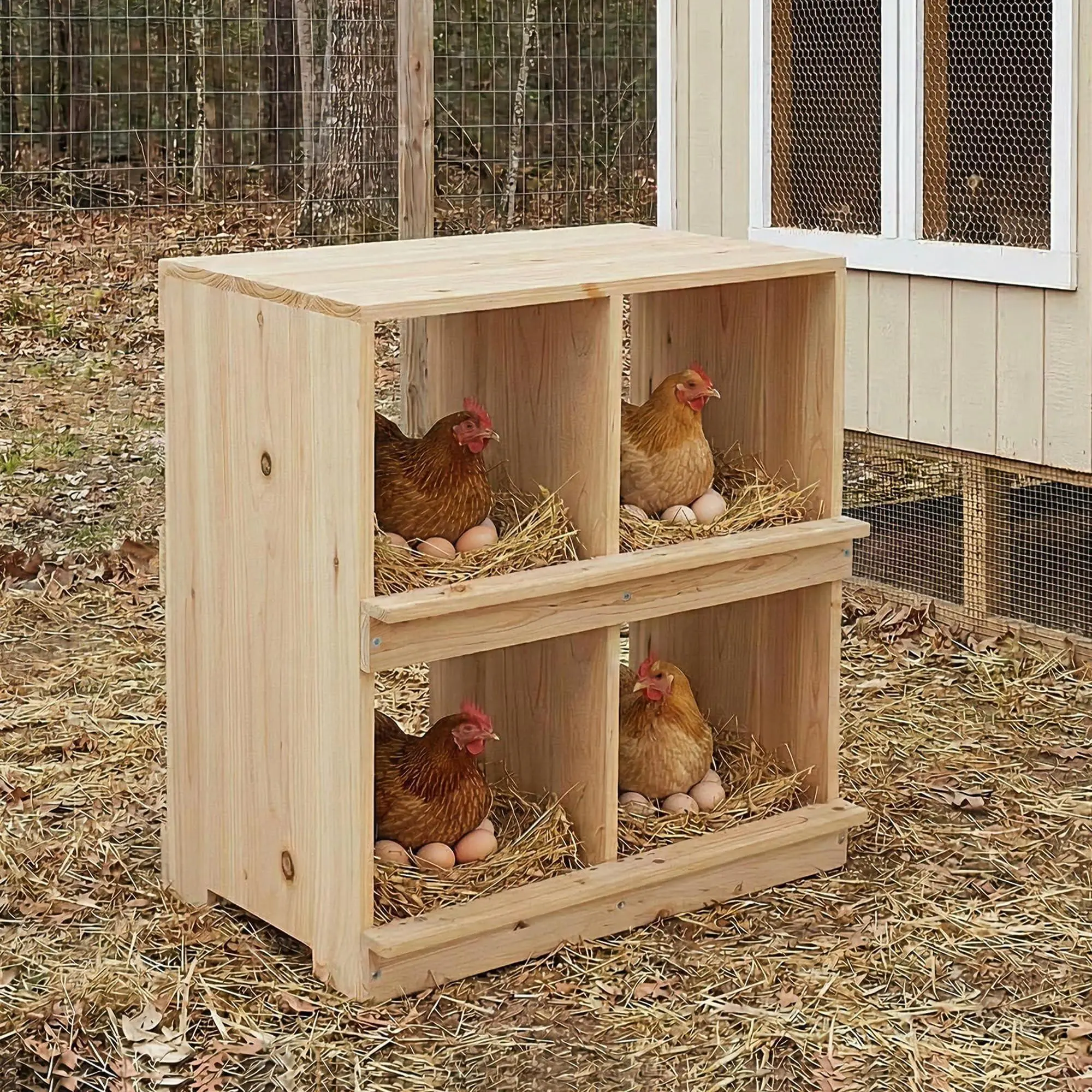 Easy To Assemble: Quickly assemble this wooden chicken nesting box using simple screws and nuts. Making it versatile chicken coop accessories for small chicken coops or chicken coop with nesting box setups.
