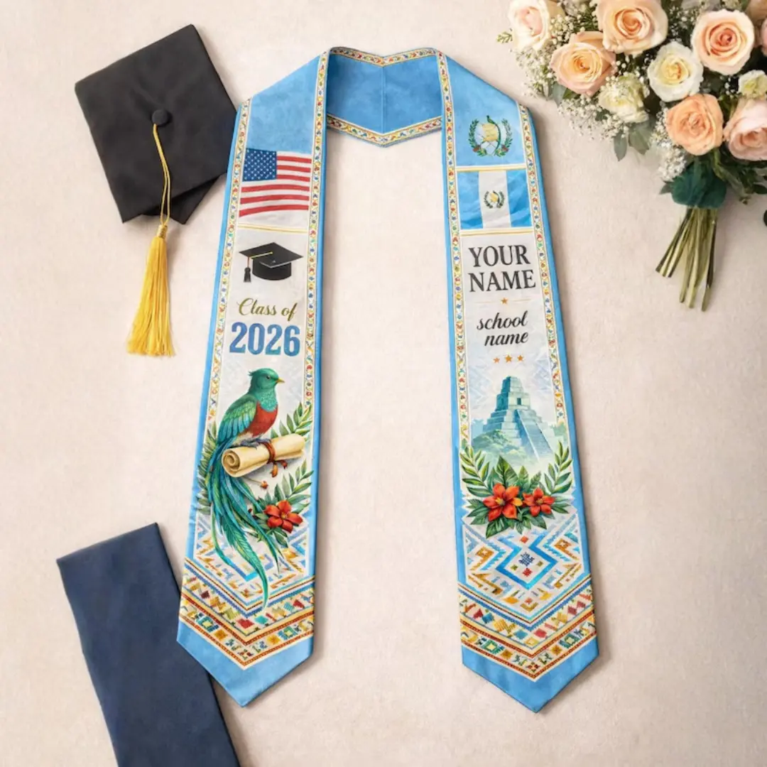 Personalized Graduation Guatemalan American Flag Stole 2026, Personalized Guatemalan Graduation Sash 2026, , Guatemalan Graduation 2026