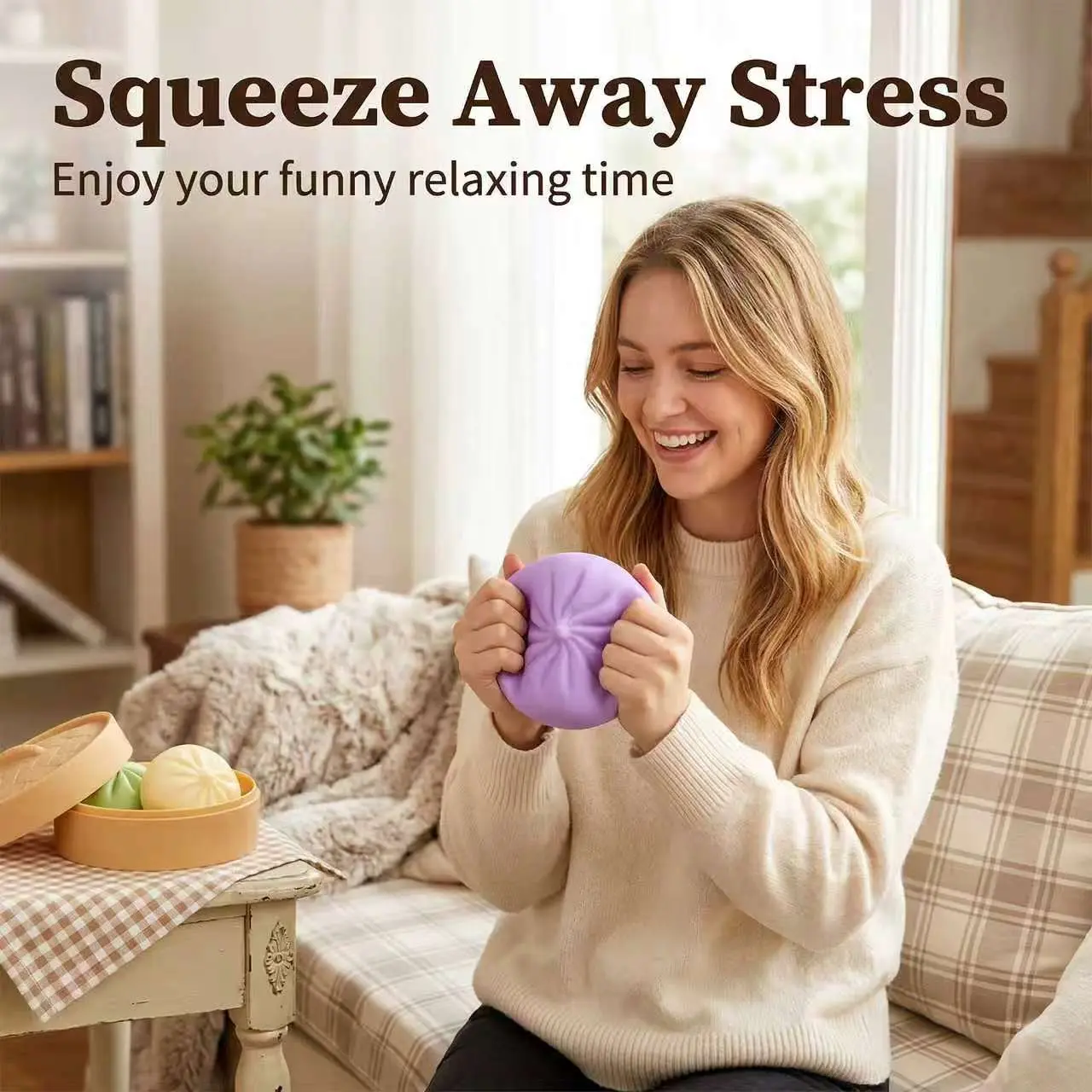 Stress Toys 4 PCS Colorful Dumpling Stress Balls Super Precious Package·The package contains 4 dumplings in different colors: yellow, purple, green, and white.Each dumpling is approximately 3.5 inches.·Each set comes with a mini steamer.Stress Relief · Feeling stressed and anxious?Squeeze this stress-relief toy to soothe your mind.It effectively relieves stress from long hours of work and study. ️· It is also an effective toy to help children relax and focus.Safe and High-Quality · These simulated cute food toys are made of high-quality TPR material, soft and durable.• They are safe and eco-friendly, suitable for long-term entertainment use.• The food steamer is made from ABS material.The Best Gift · Colorful Soft Sensory Stress Relief Ball will become a trendy gift for teenage birthdays, Easter baskets, Halloween, Christmas stockings, Children's Day novelties, office toys, and more!Suitable for kids birthday party, keep those active bodies busy all dayOdorless・Due to packaging and transportation sealing, new toys may have a slight smell.· This safe and odorless substance will naturally dissipate after being left in a well-ventilated area for a few days or used multiple times.