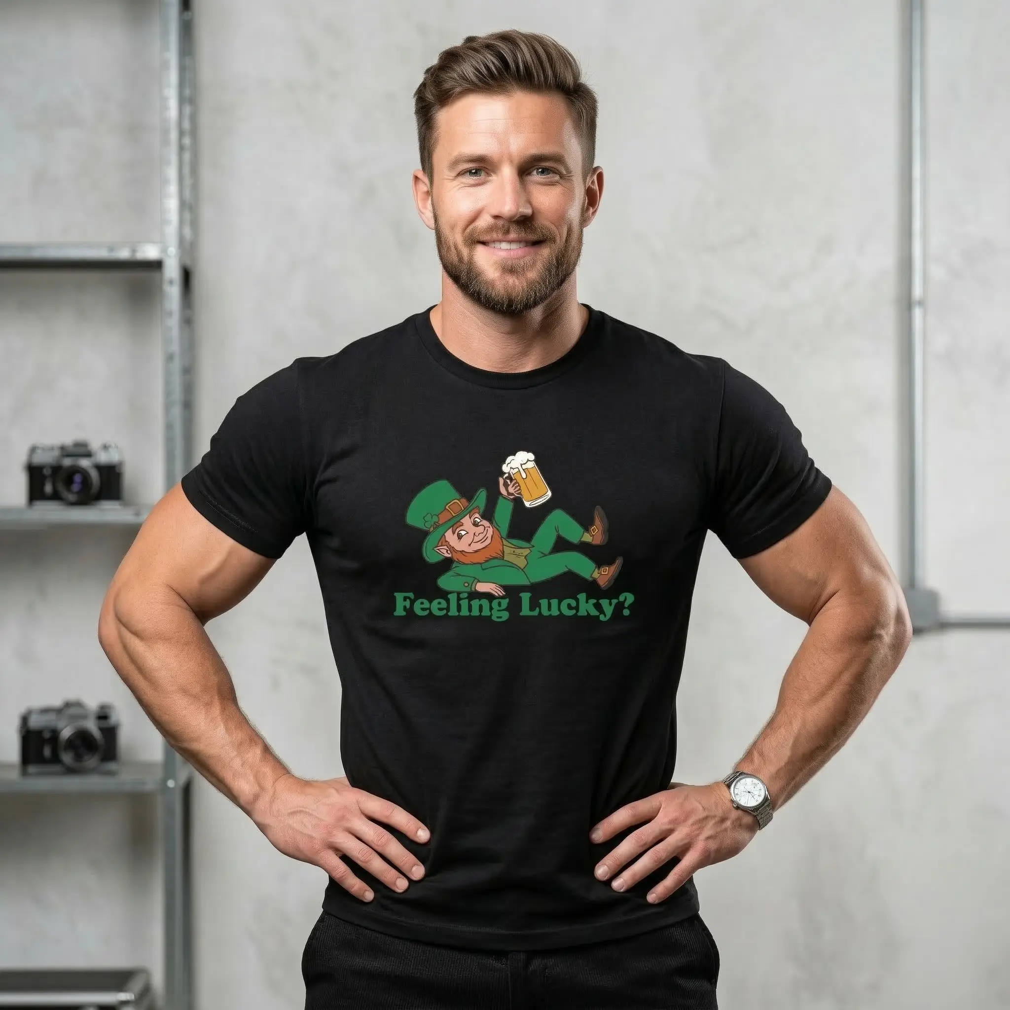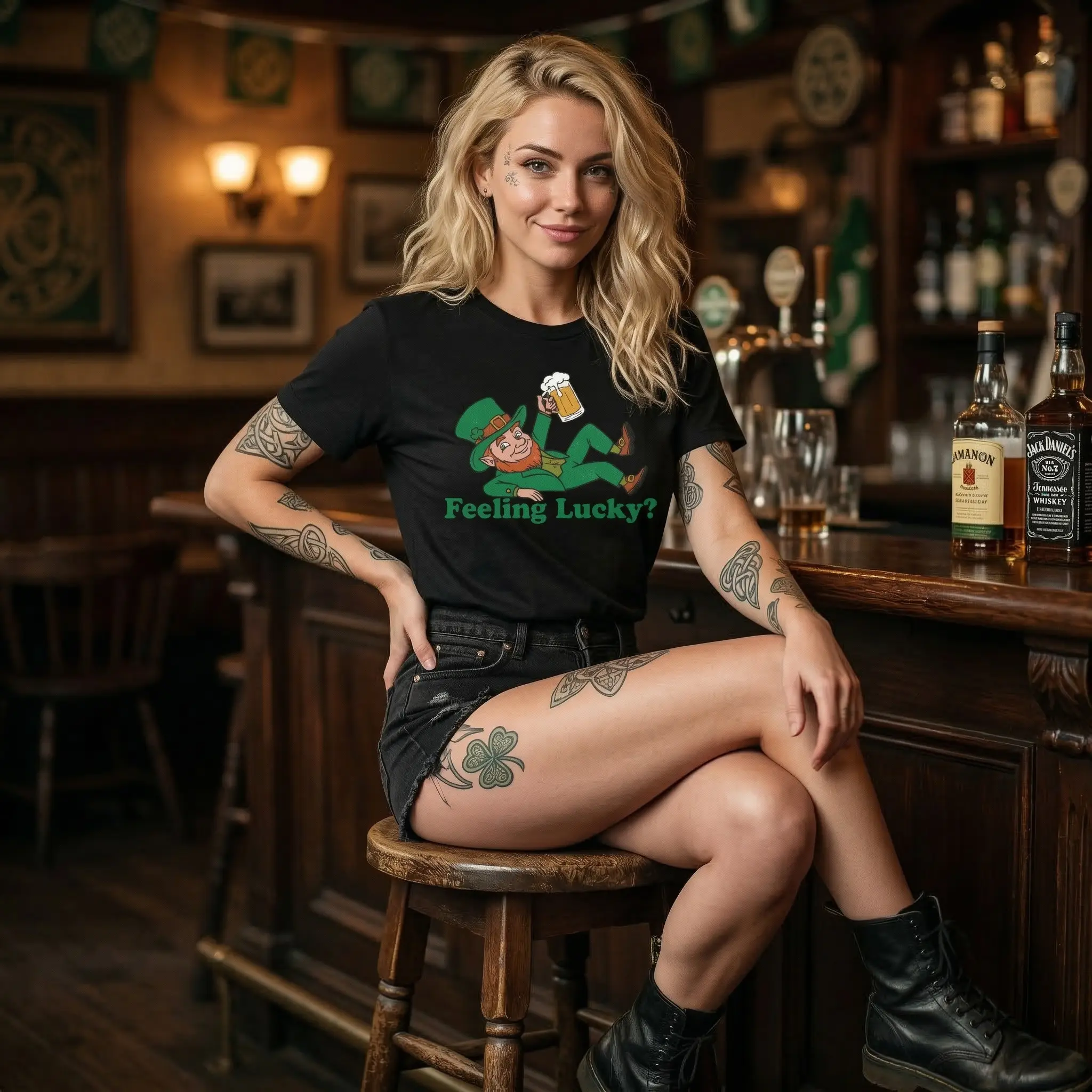Feeling Lucky Irish Shirt: This unisex casual festival top is perfect for St. Patrick's Day.It features a trendy aesthetic and retro printed design.🍀