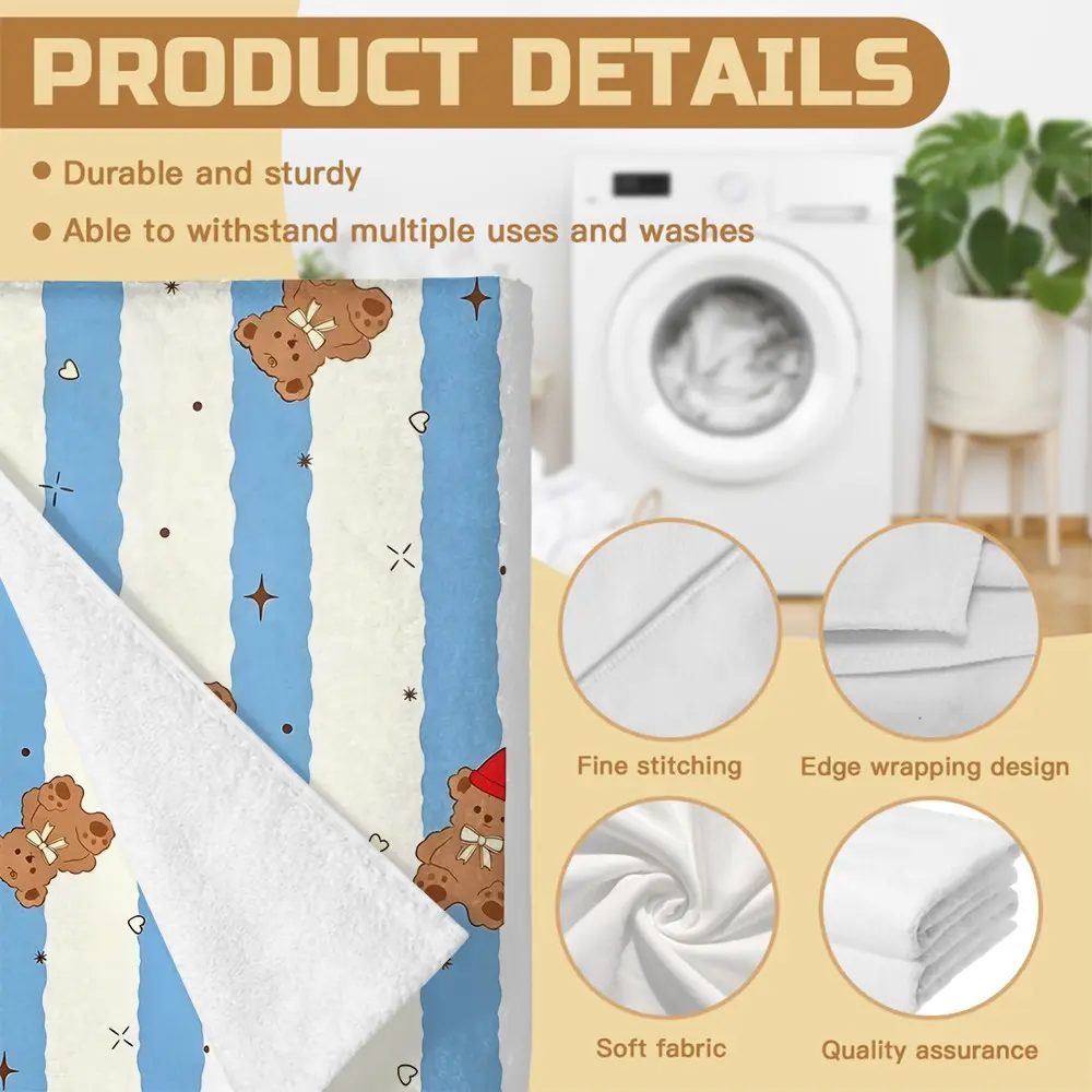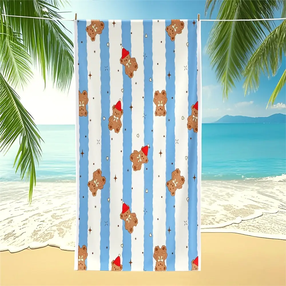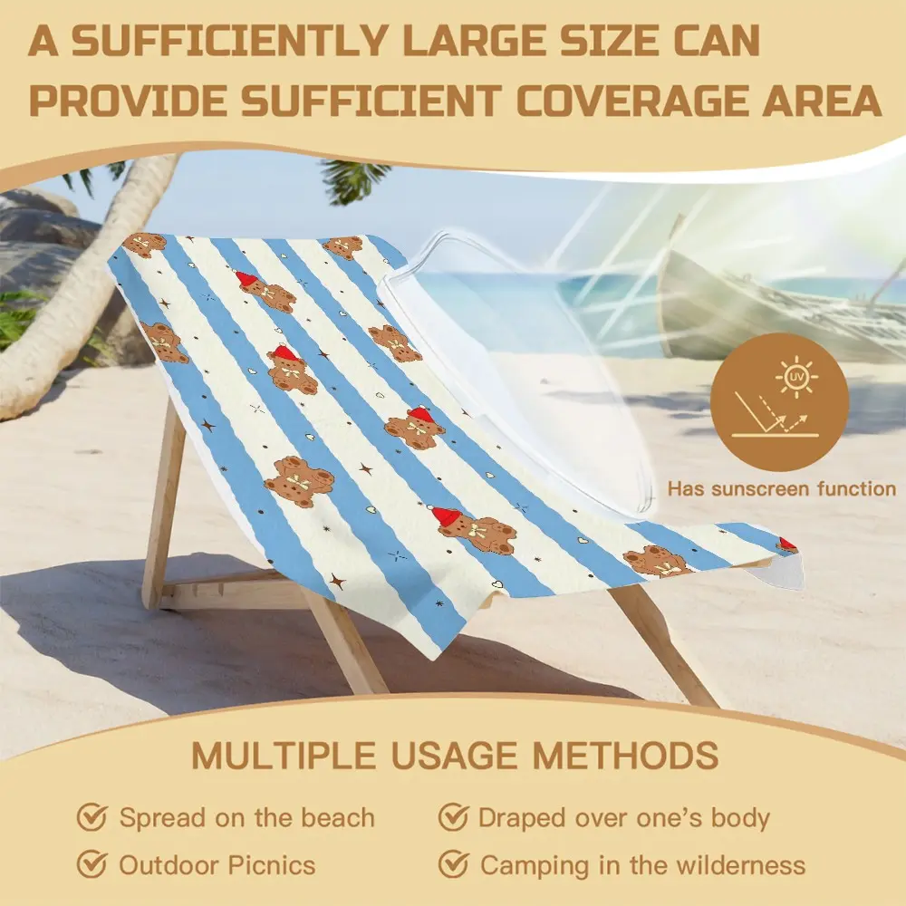 Cartoon Teddy Bear Beach Towel, Cute and Fresh Print Design, Lightweight and Quick-Drying Towel, Suitable for Teens and Children at the Poolside, on Vacation, Travel, and Outdoor Summer Use, Lightweight