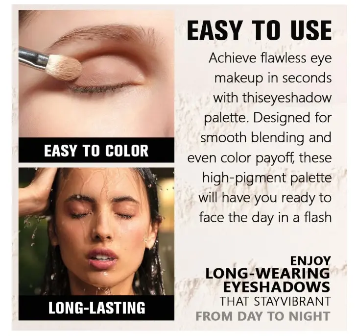 ·Versatile Finishes: Choose from a range of finishes matte for a natural look, shimmer for a glamorous glow, or metallic for bold statement eyes Perfect for any occasion!