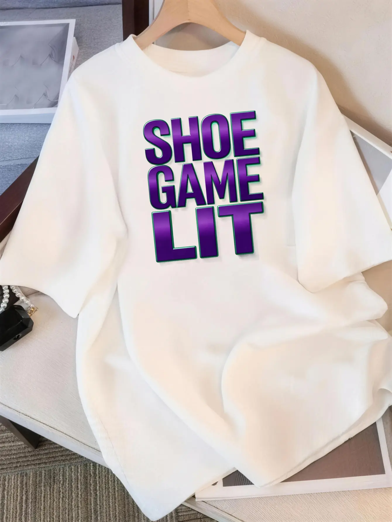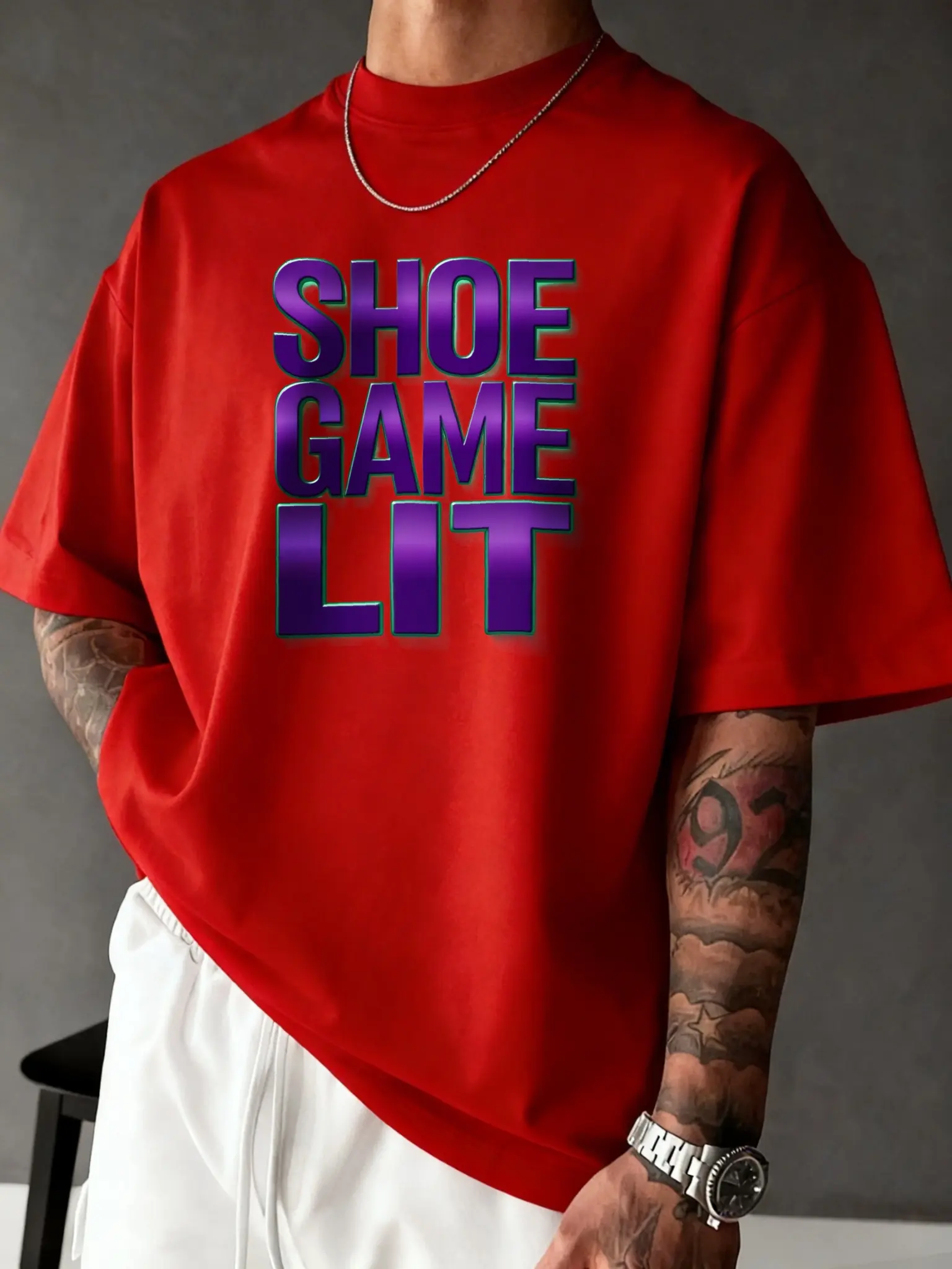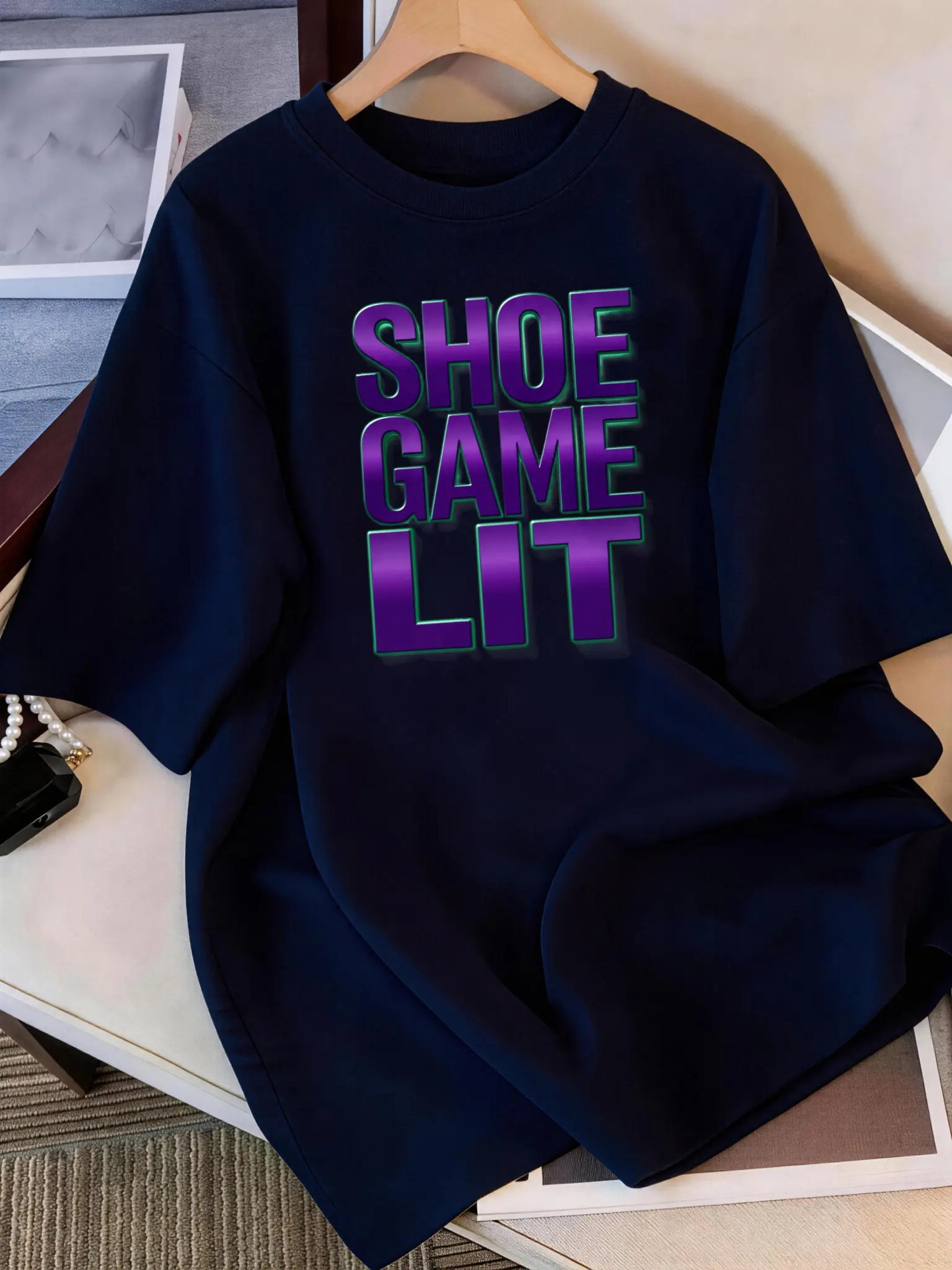 Men's Graphic T Shirts Oversized Retro Print Bold Purple Text Shoe Game Lit Streetwear Style Lightweight Breathable Men's Casual Top | Men's Fashion Top