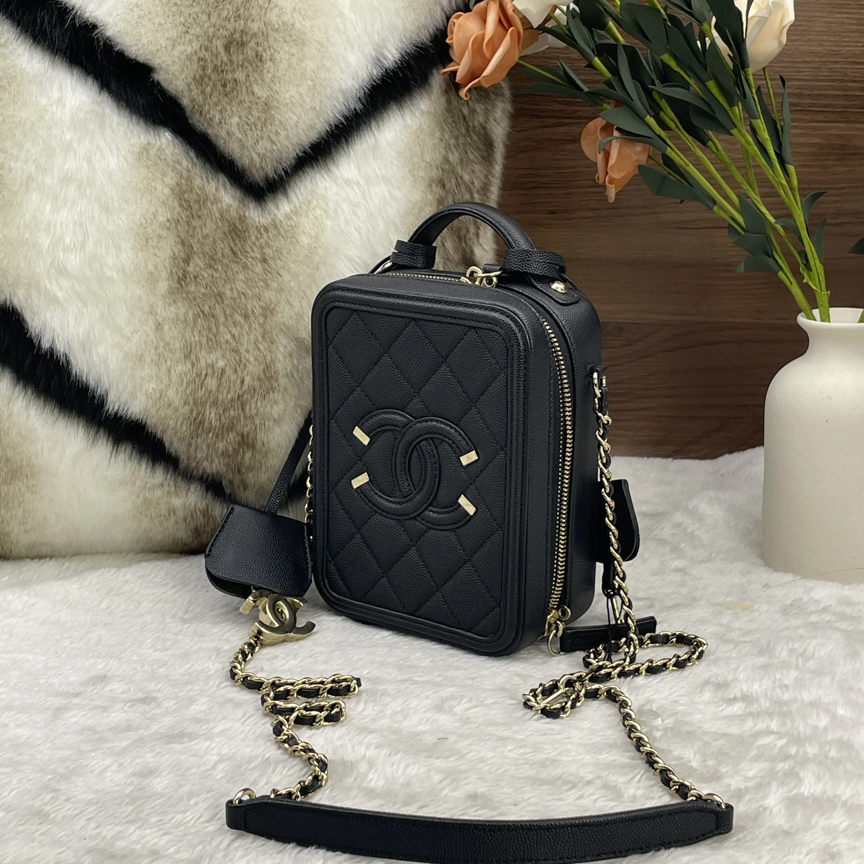 Chanel CC Filigree Mini Vertical Case Bag in Black Caviar Leather with Gold-Tone Hardware