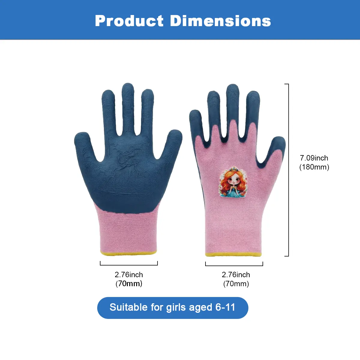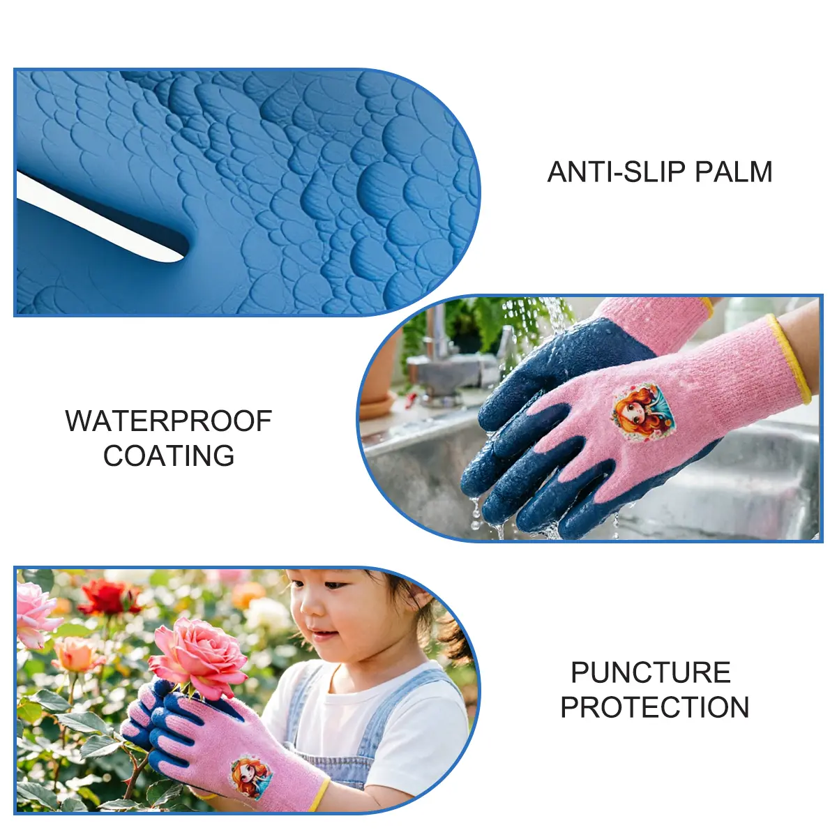 3PCS-Girls Protective Work Gloves Age 5-12 | Pink Anti-Slip Grip | Perfect for Pet Care, Gardening & Beach Play