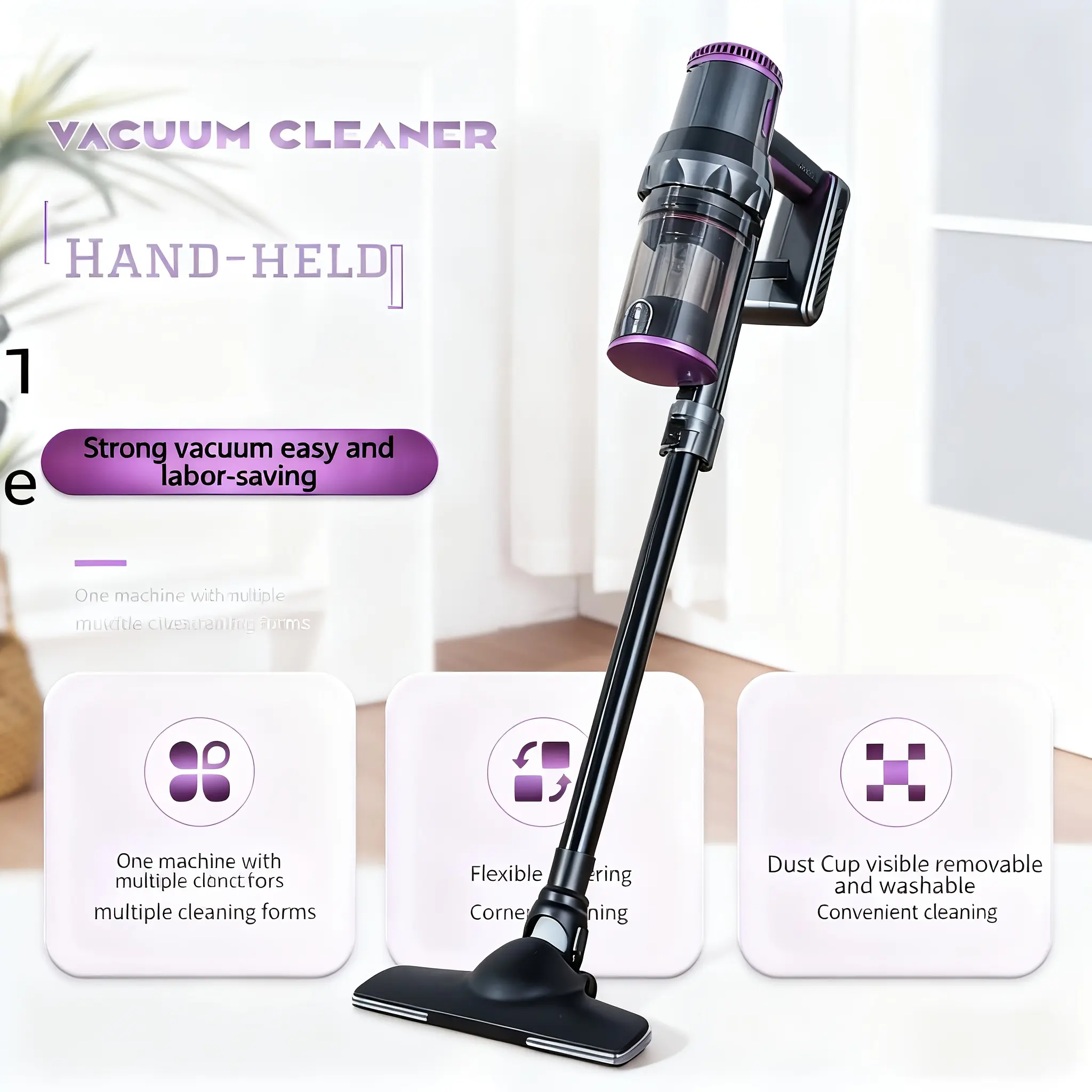 Compact And Lightweight Upright Vacuum Cleaner, Equipped with Multiple Suction Head Attachments, Offering a Powerful Suction of Up to 18000PA, Ideal for Carpets, Hard Surfaces, And Pet Hair