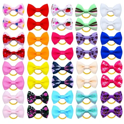 Dog Hair Bows Cute Puppy Dog Bowknot Hair Ties Bulk with Rubber Bands Hair Accessories Bow Pet Grooming Products 40PCS