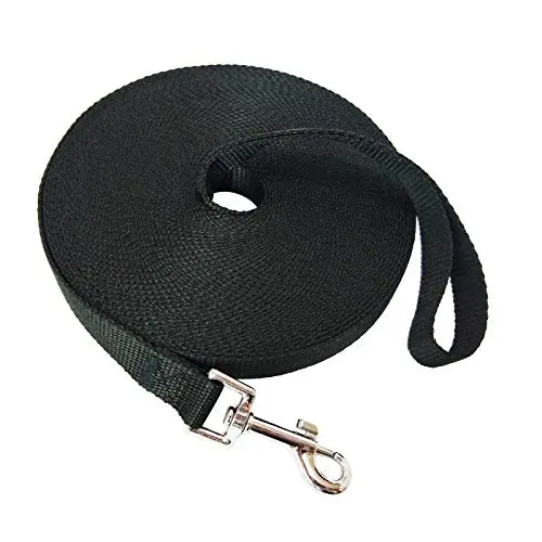 Nylon Training Dog Leash for Small Medium Large Dogs, 15ft 20ft 30ft 50ft Long Puppy Lead for Obedience Recall Training, Camping (20ft, Black)