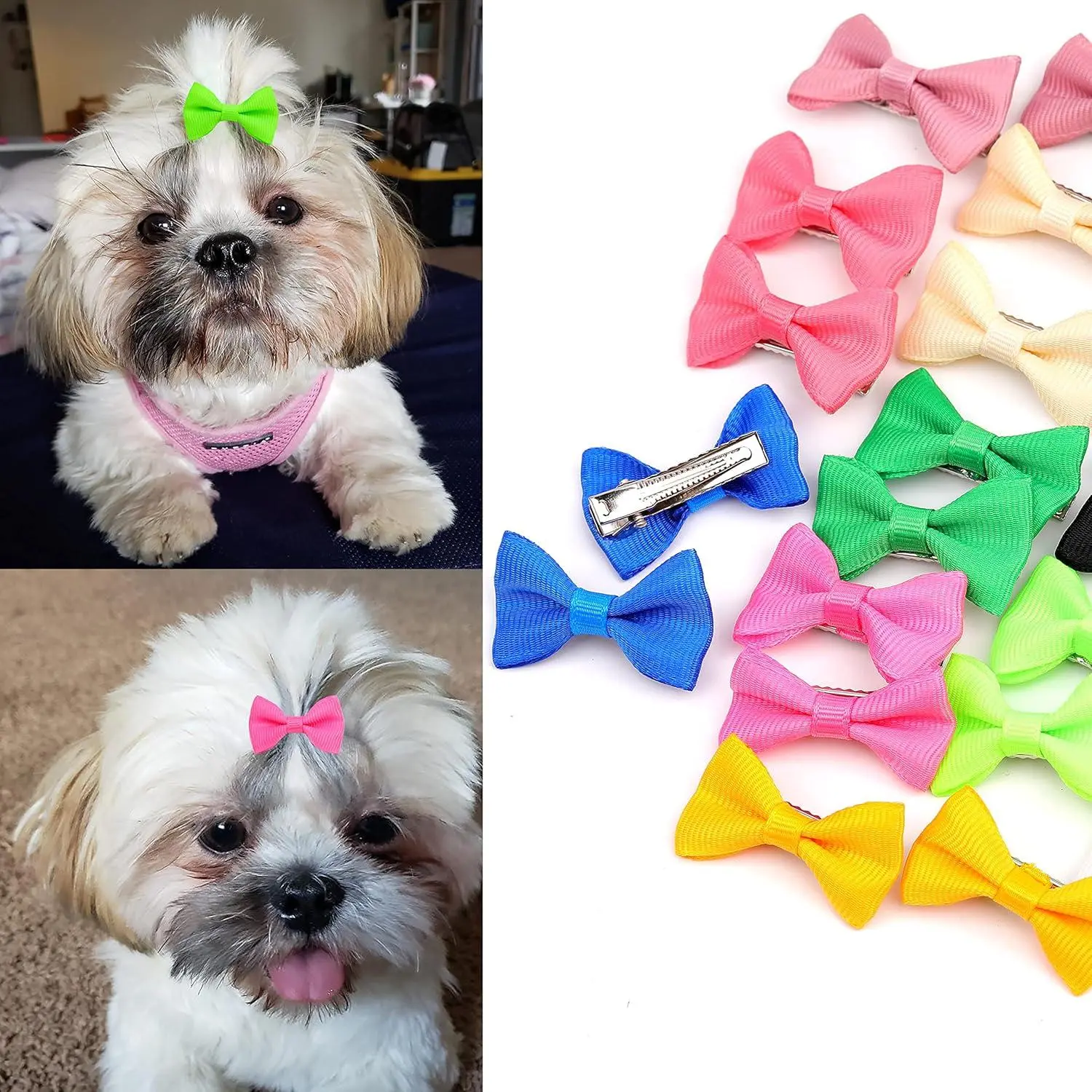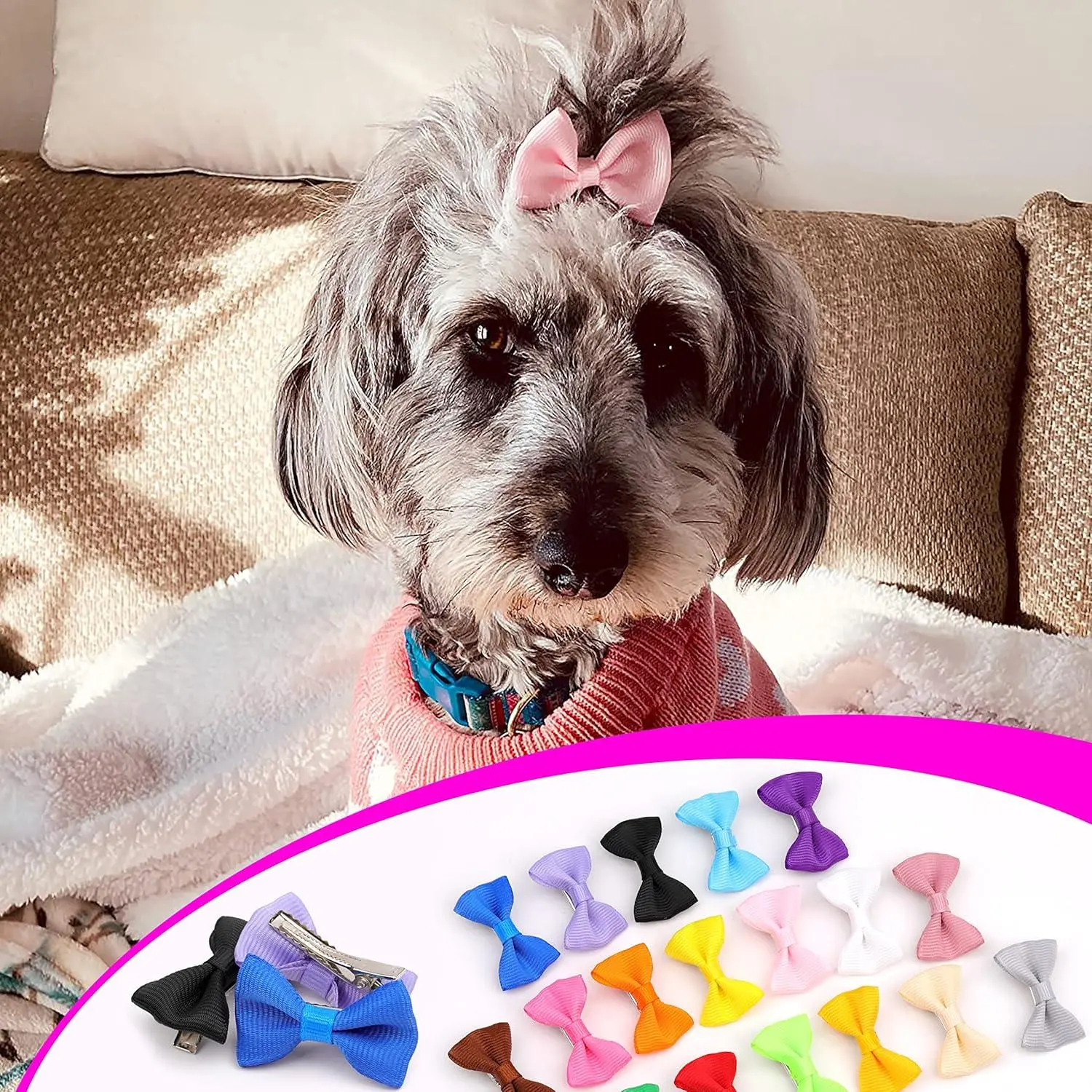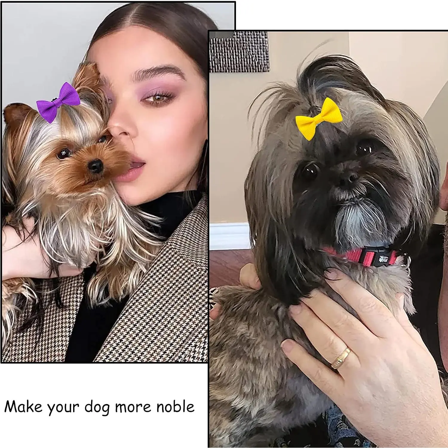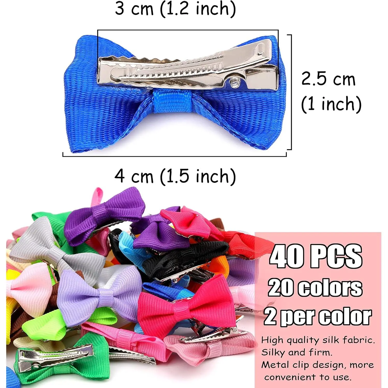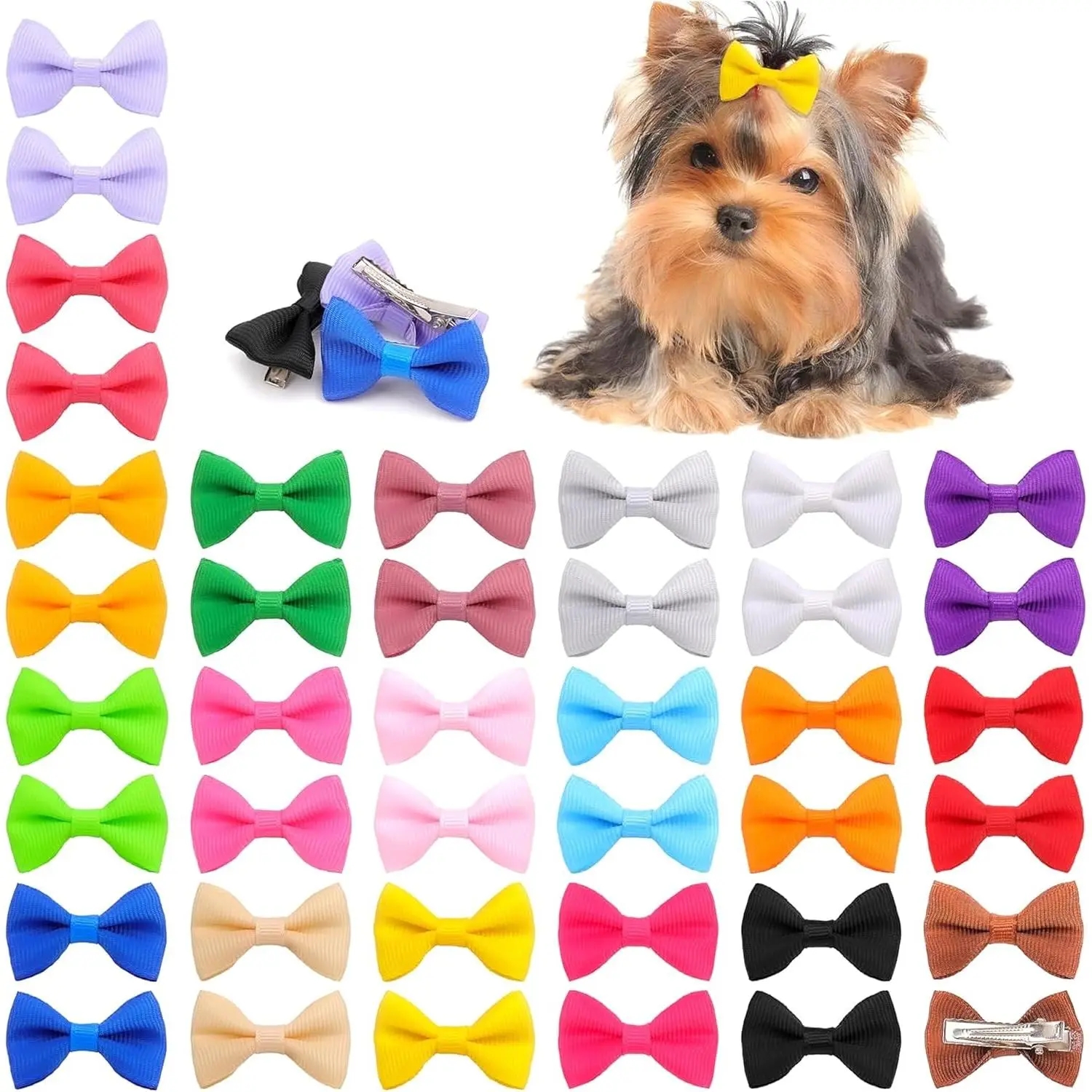40PCS Christmas Dog Bows Cute Puppy Dog Small Bowknot Hair Bows with Clips Bands Small Hairs Bowknot Pet Hair Accessories Pet Grooming Accessories for Party Christmas Birthday