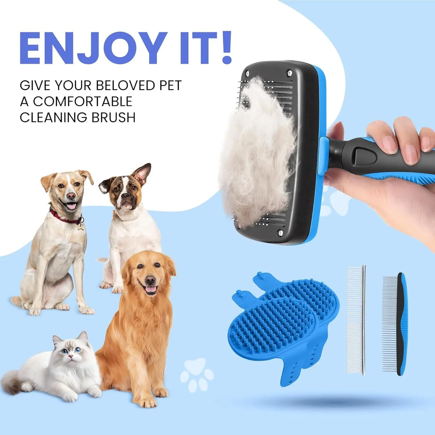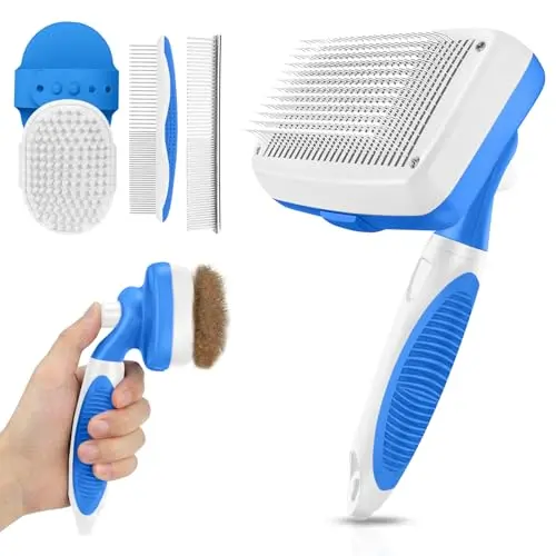 Self Cleaning Shedding Brush - 5-in-1 Professional Pet Grooming Kit Skin Friendly Grooming Tool for Dogs, Cats, and Puppies, Deshedding and Hair Removal for Long and Short Haired Pets, Blue