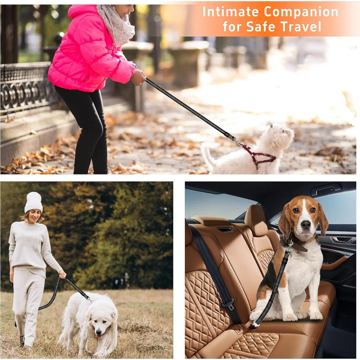 Dog Car Seat Belt Set - 3 Piece Retractable Harness, Adjustable Reflective Seatbelt for Vehicle Headrests, Safety Restraint, Heavy Duty & High Elastics, Black