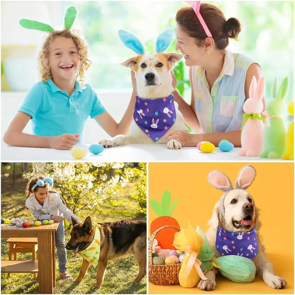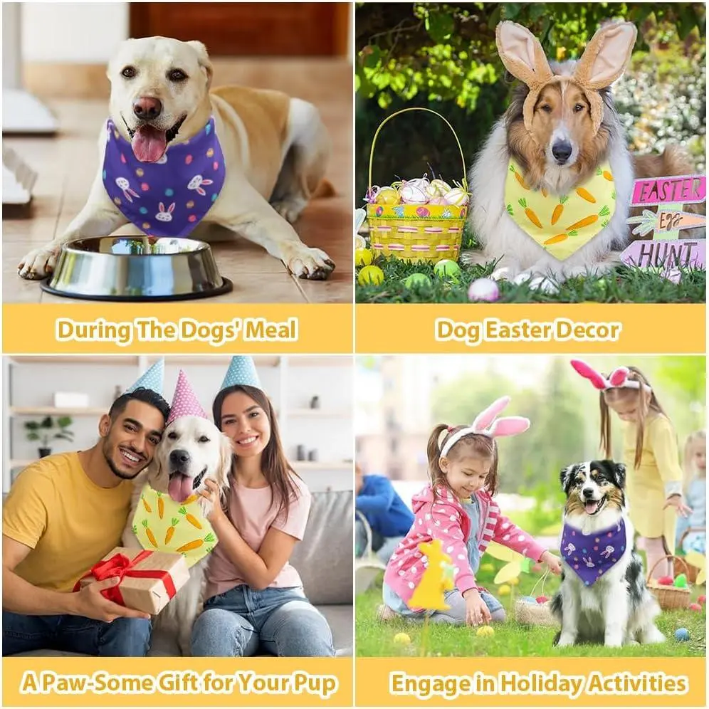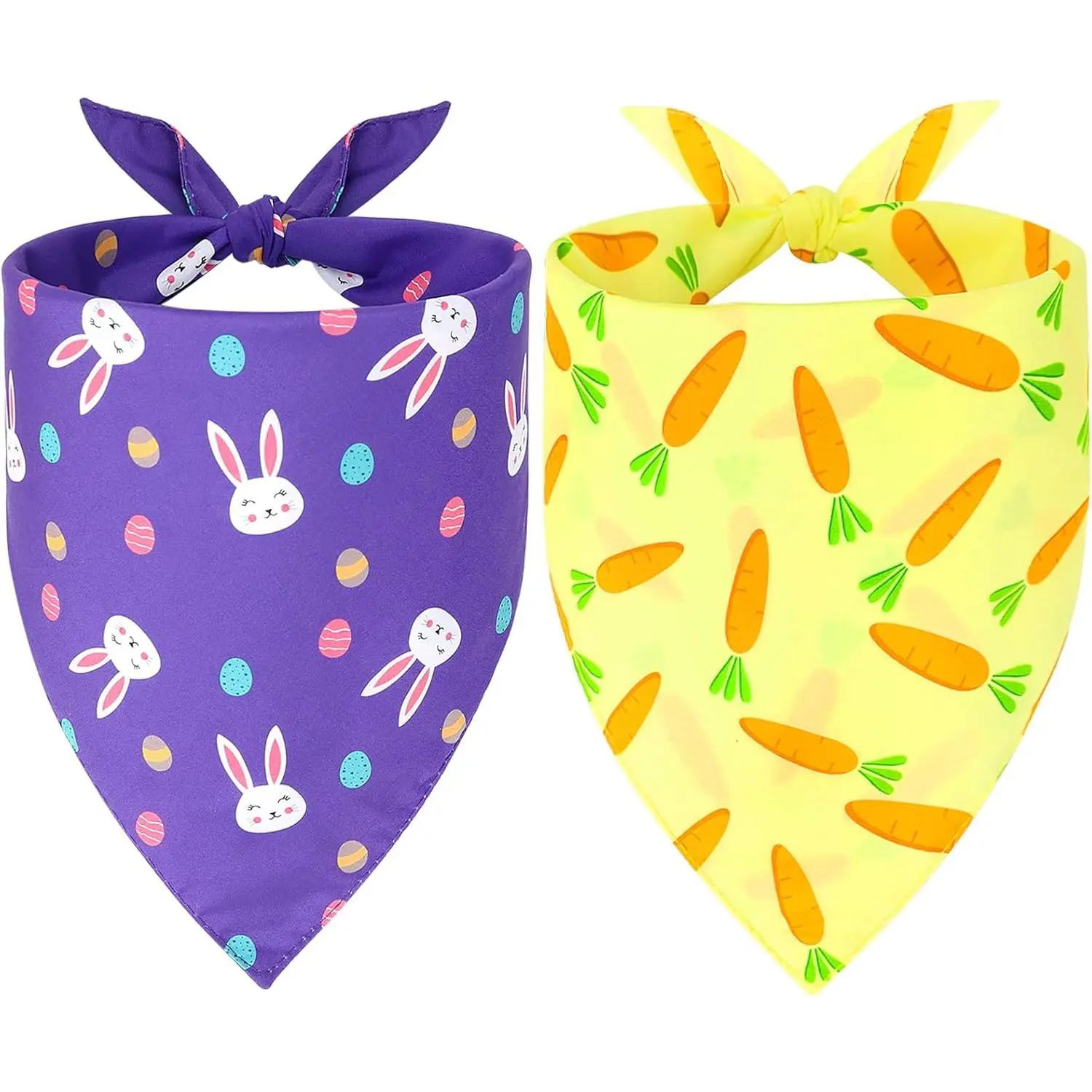 Vivifying Easter Dog Bandanas - 2 Pack Festive Pet Accessories with Cute Bunny and Carrot Patterns, Perfect for Easter Celebrations (X-Large, Purple & Yellow)