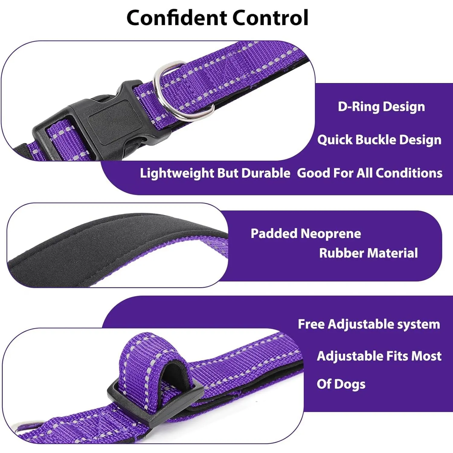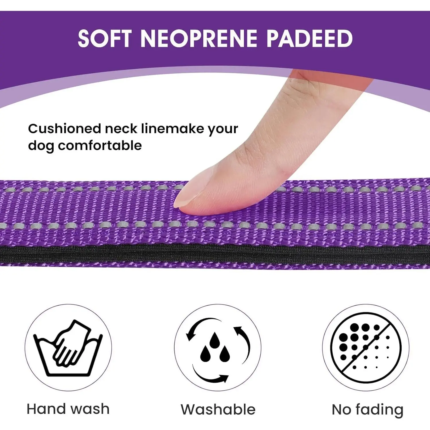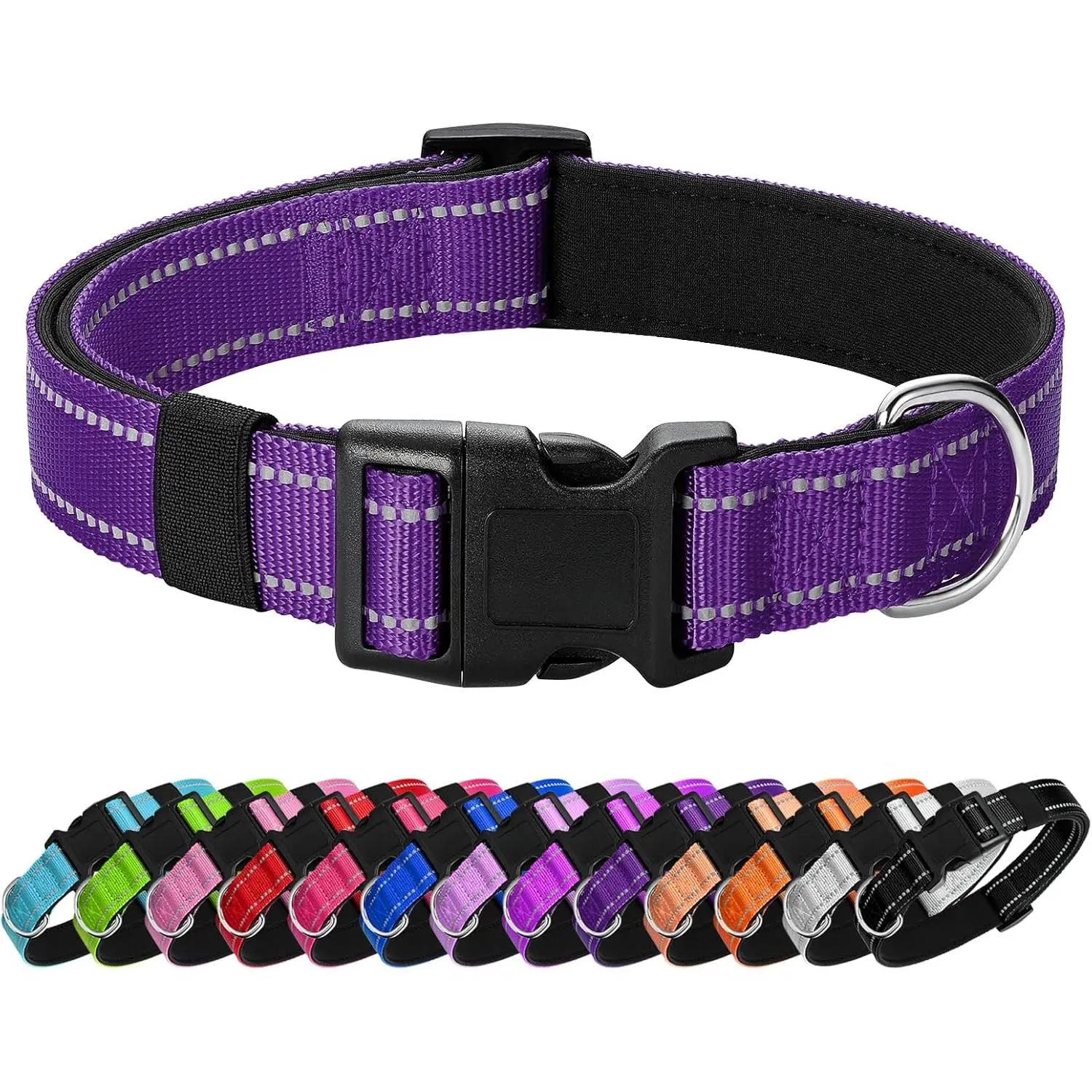 Reflective Dog Collar Padded with Soft Neoprene Breathable Quick Release Basic Dog Collars for Medium Dogs Purple Girl