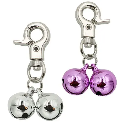 Bells for Dog Collars - 2 Pack Stainless Steel Bell Necklace for Dogs & Cat - Pet Pendant Accessories Training Collar Charm with Heavy Duty Snap Clips, Silver Christmas Gift