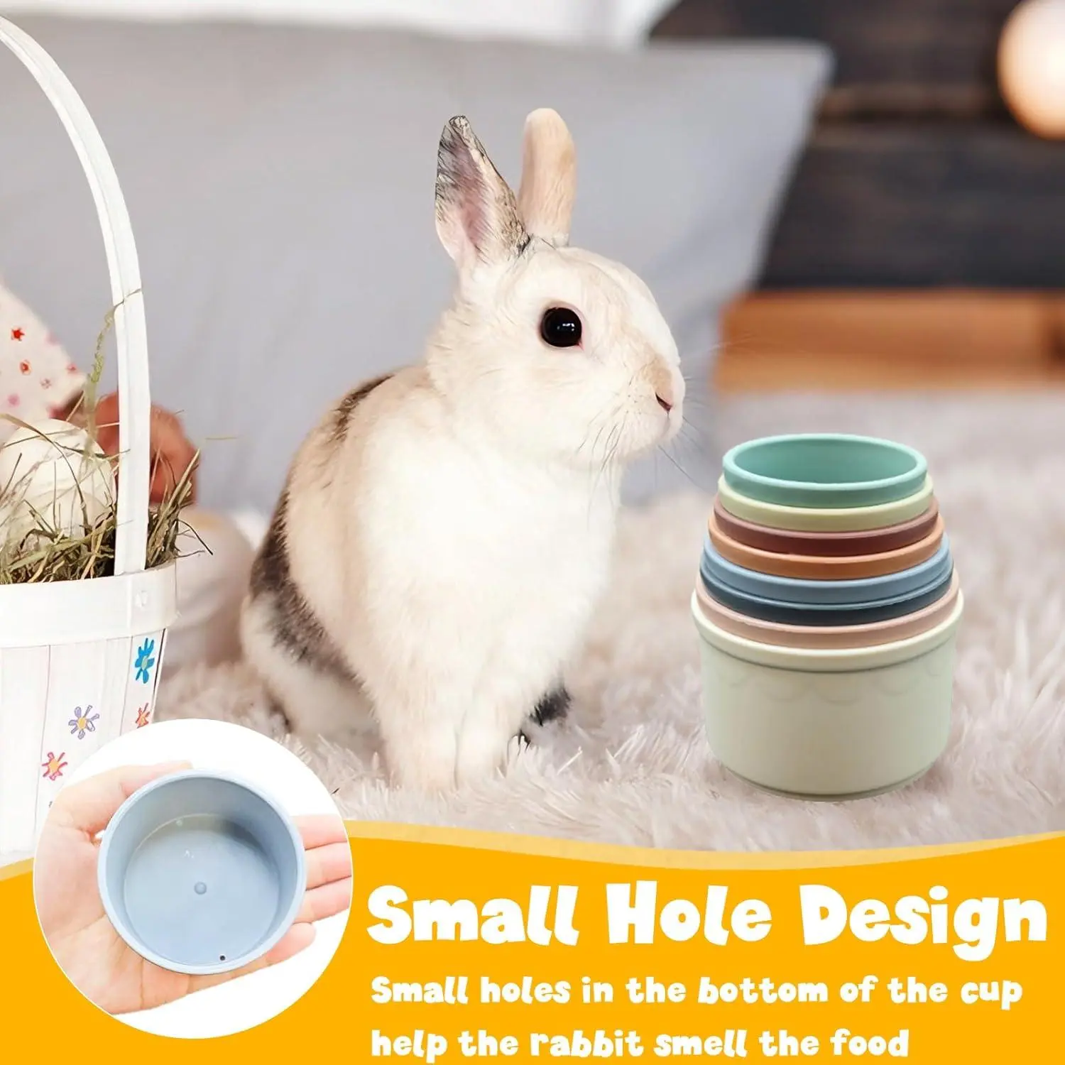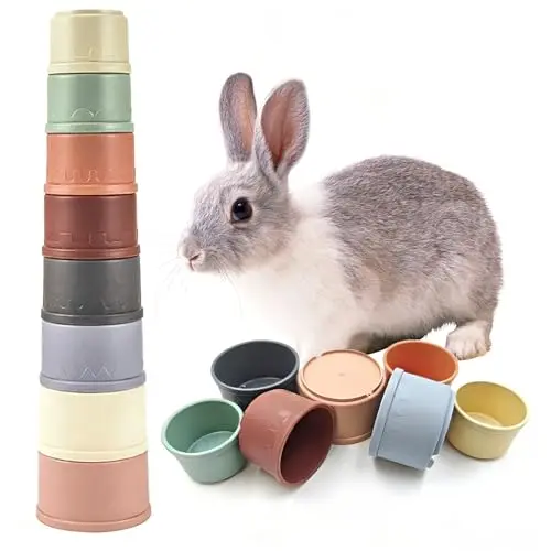 8 Pcs Stacking Cups for Small Animal Toys,Nesting Rabbit Toys of Different Sizes,Safe Plastic Colorful Nesting Toys for Bunny Guinea Pig Hiding Food and Playing