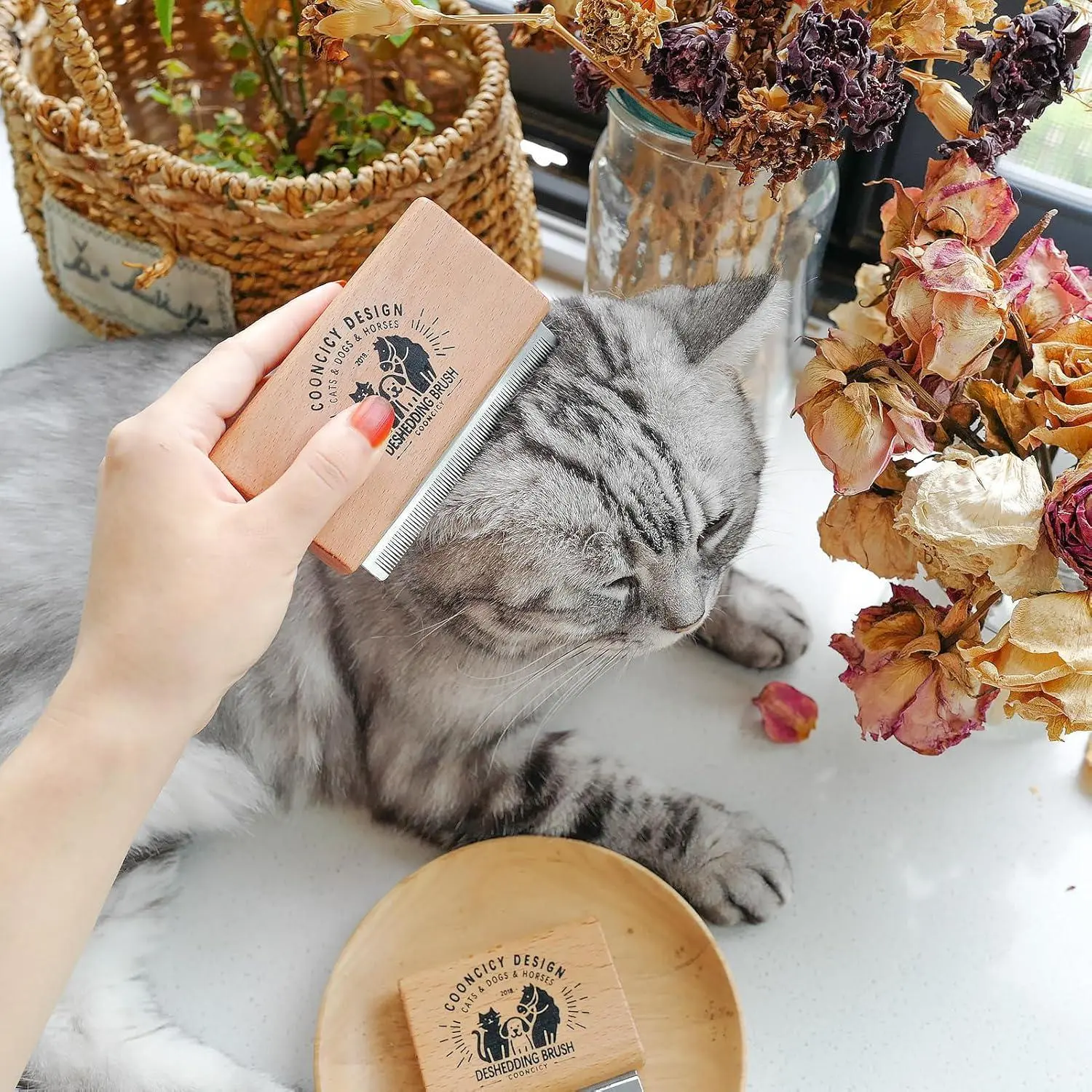 SleekEZ Cat Brush for Shedding & Grooming, Wooden Handle & Stainless Steel Blade, Pet Brush for Indoor Cats, 2.5 Inches Long Groomer Tools Fur Removal Tool
