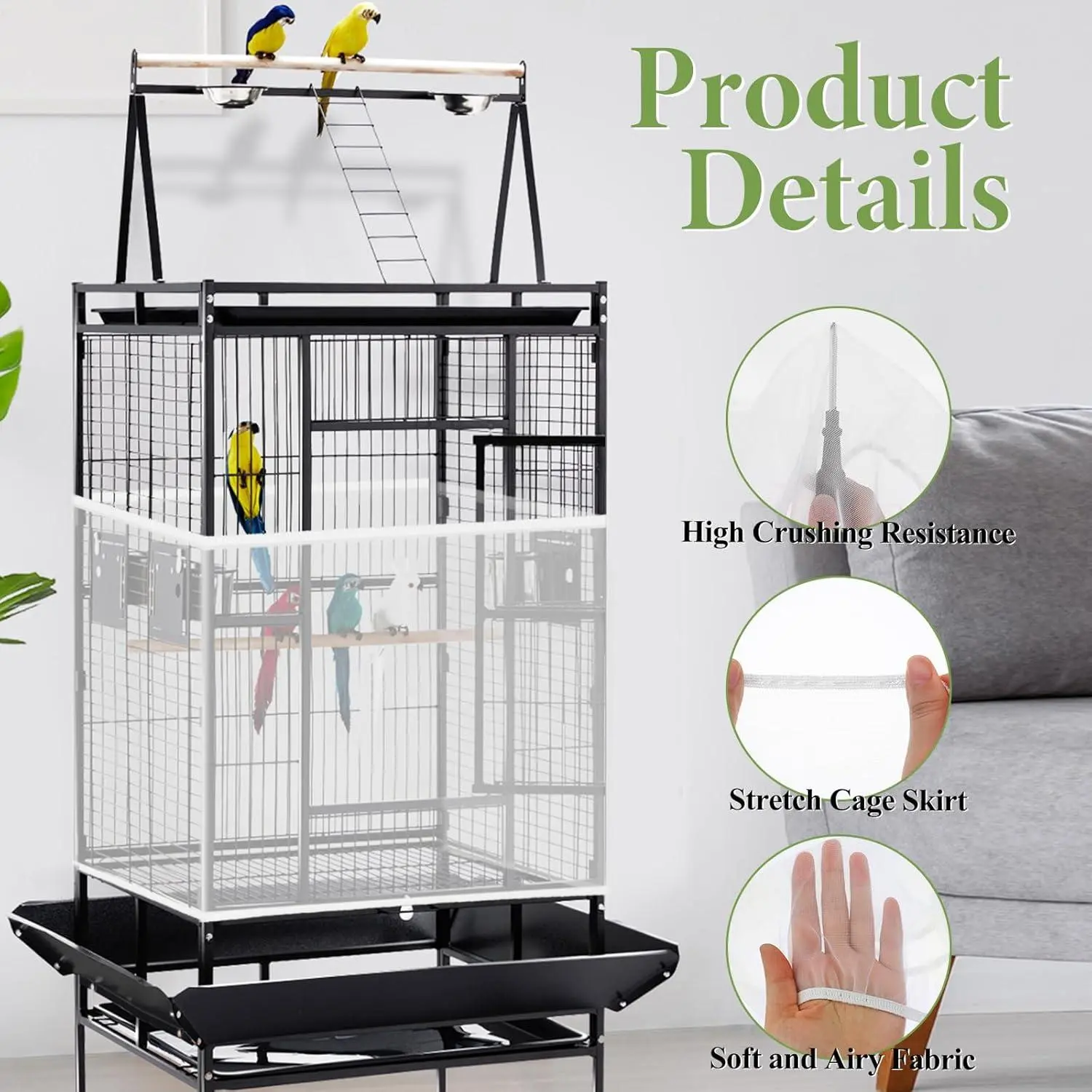 Bird Cage Seed Catcher White Bird Cage Net Cover Adjustable Birds Cages Netting Seed Catcher Stretchy Birds Cages Guard for Parrot Enclosures