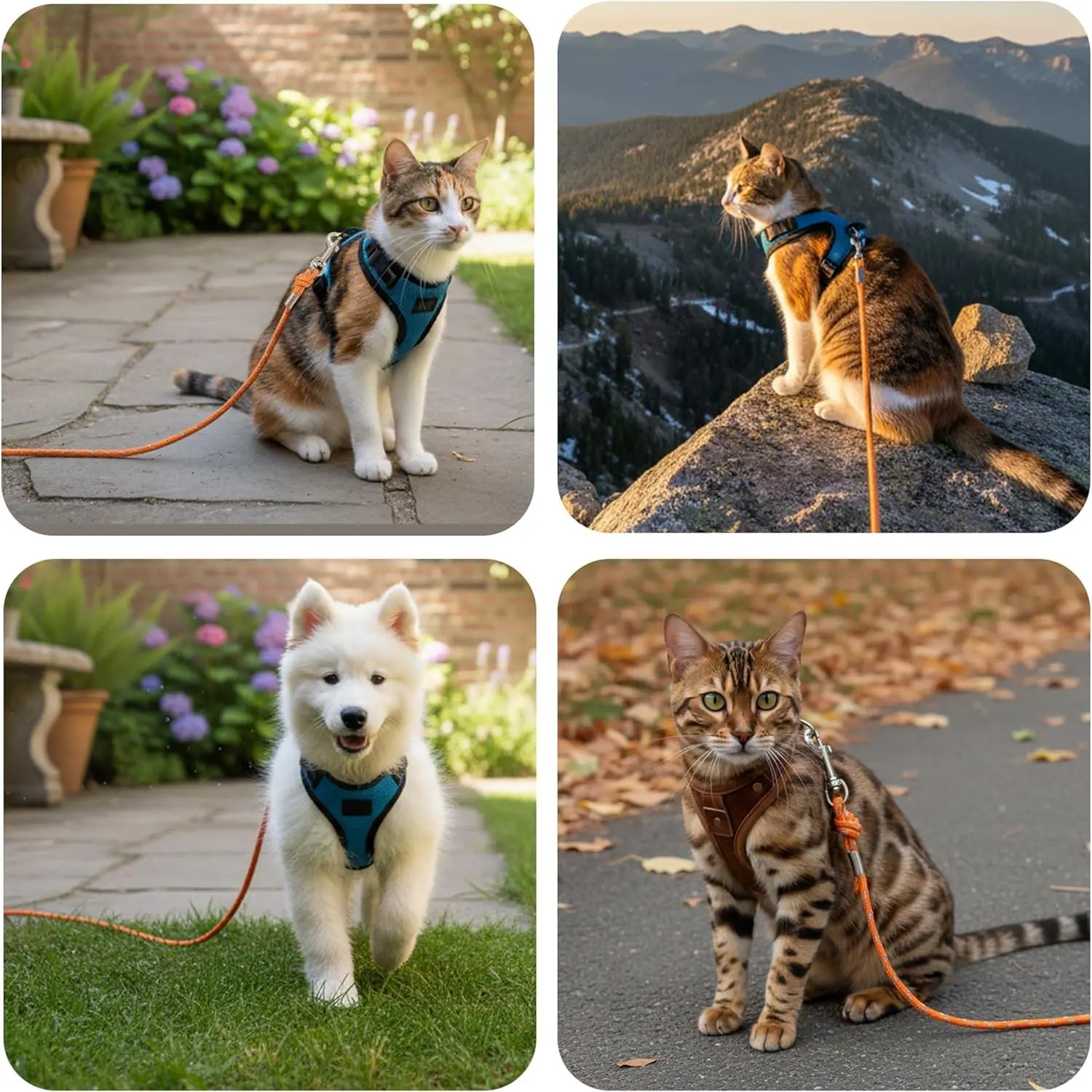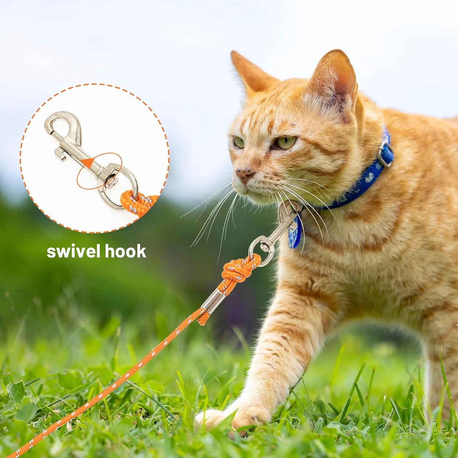 Cat Leash - 15 ft / 30 ft Reflective Long Cat Leash Outdoor for Walking Training Playing - Escape Proof Yard Lead Pet Leash Also for Cats, Small Dogs, Puppy, Kitten, Rabbit