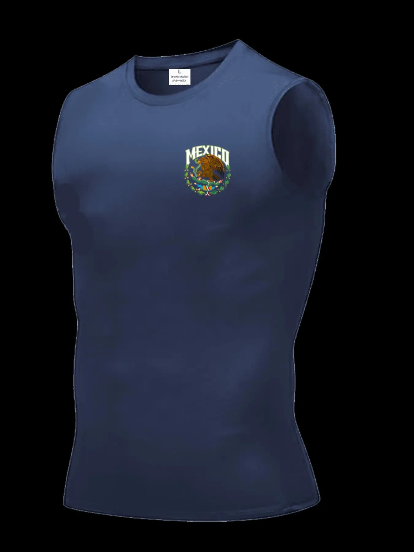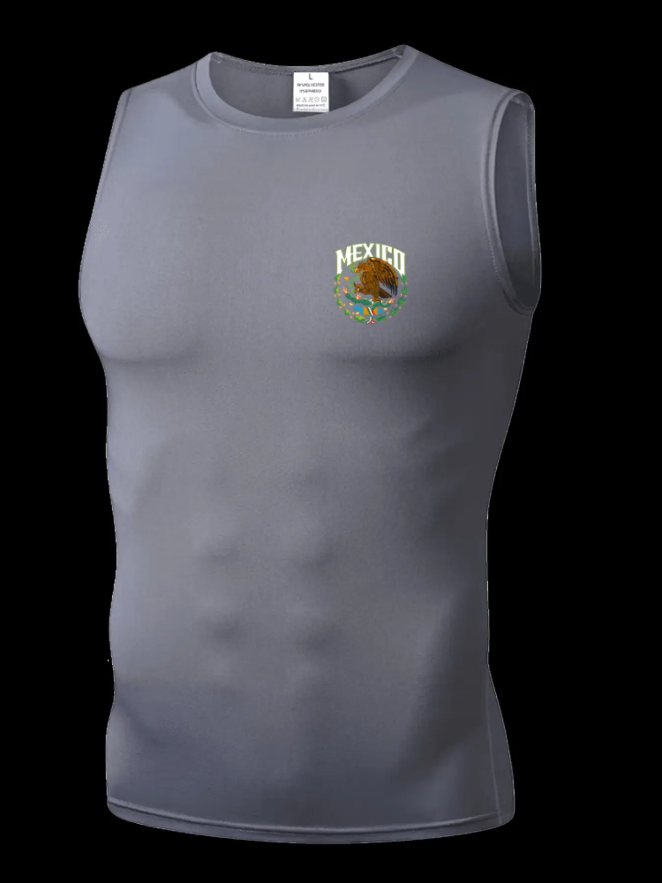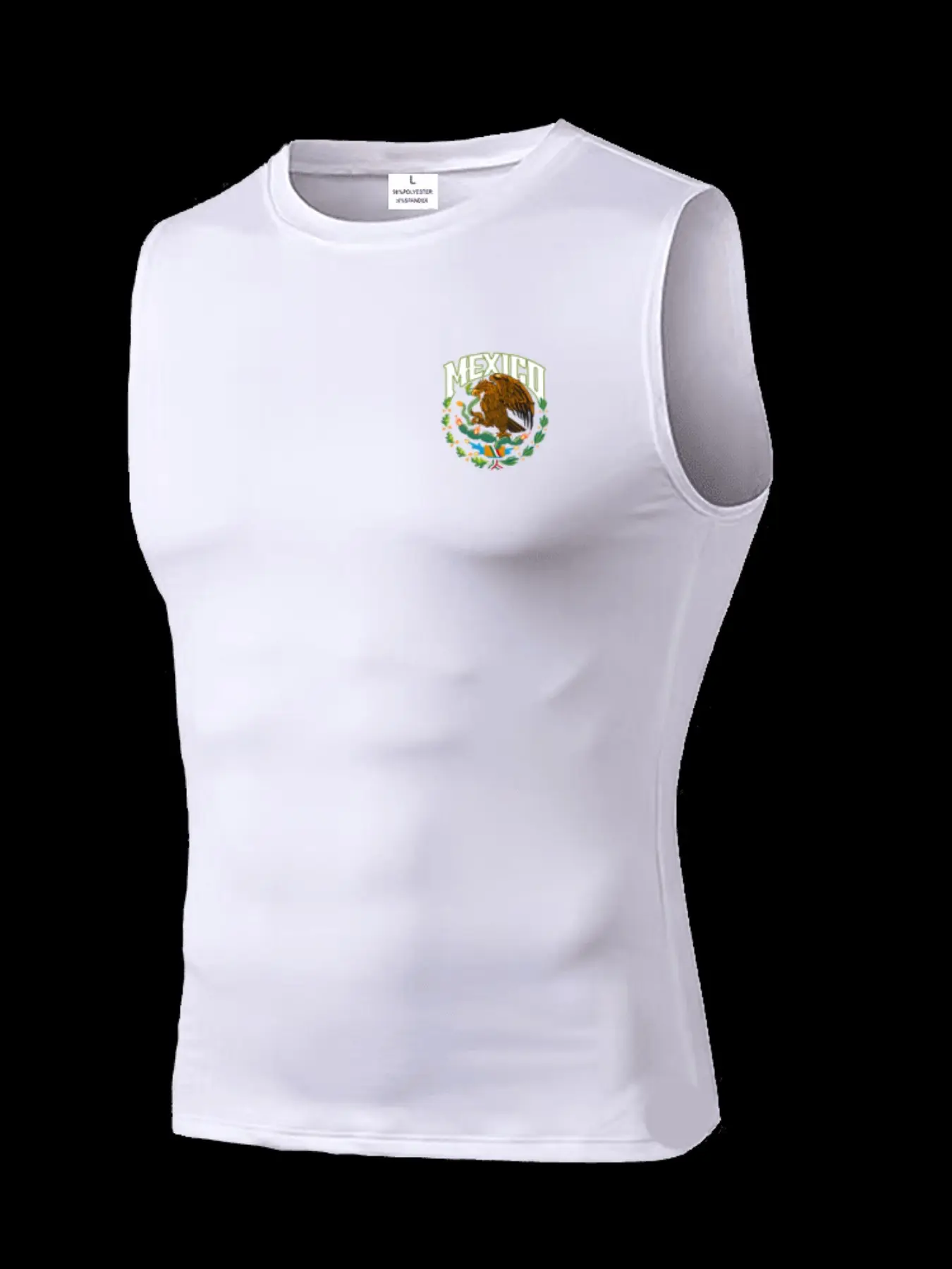 Men's Short Sleeve Sporty Tee, Quick-Dry Breathable Fabric, Mexico Print, Slim Fit, Ideal for Gym, Running, Boxing, Outdoor Activities
