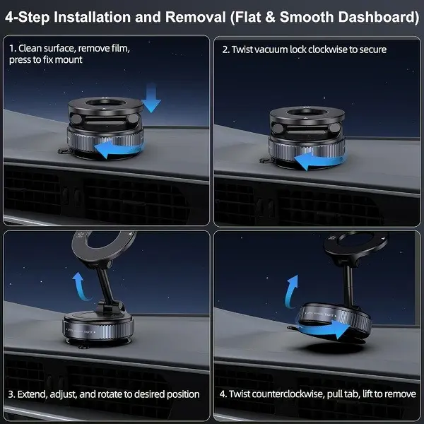 Strong Vacuum Suction Cup:Securely holds your phone.