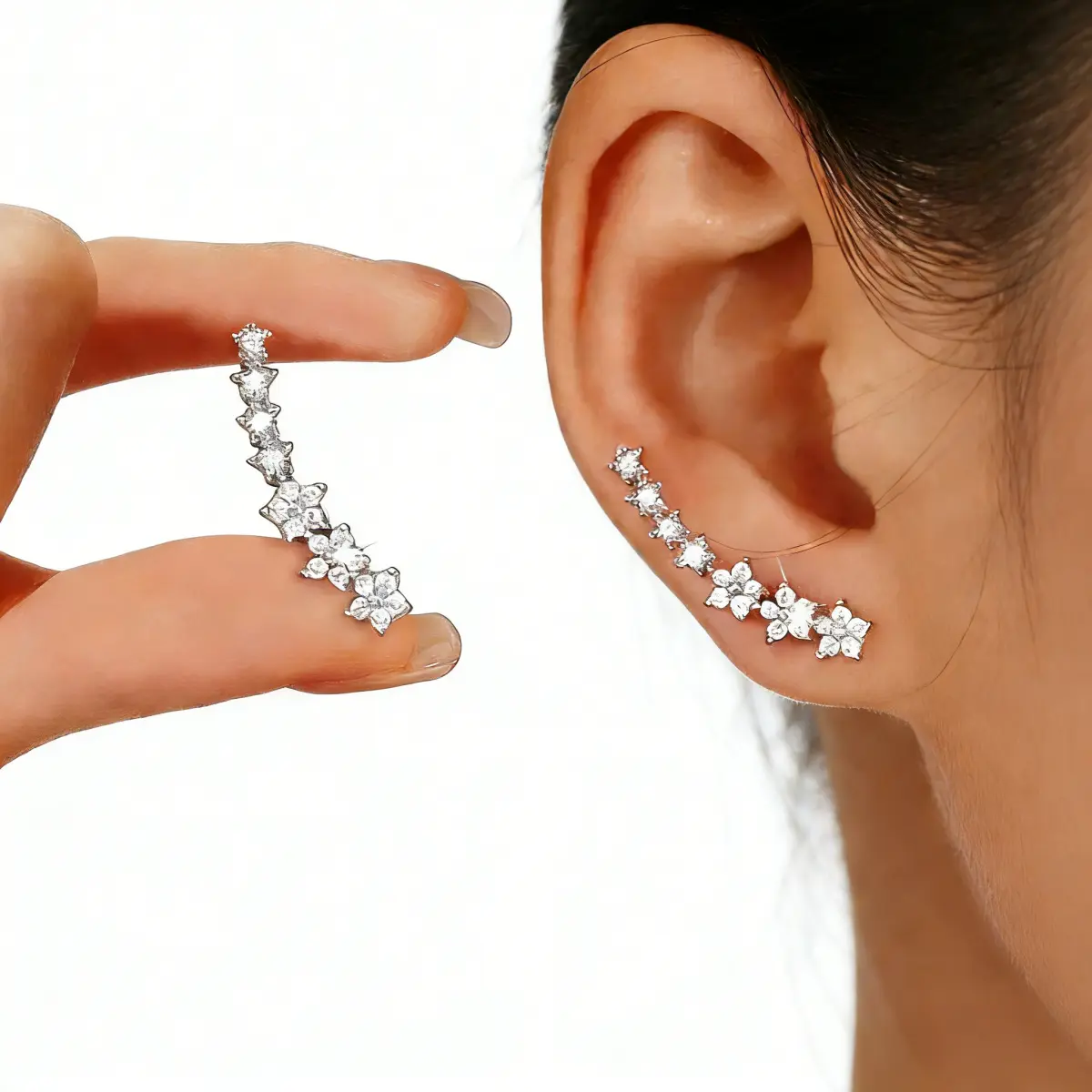 Flower Earrings For Women Sparkling Crystal Rhinestones Hypoallergenic Studs Minimalist Jewelry All Seasons L34