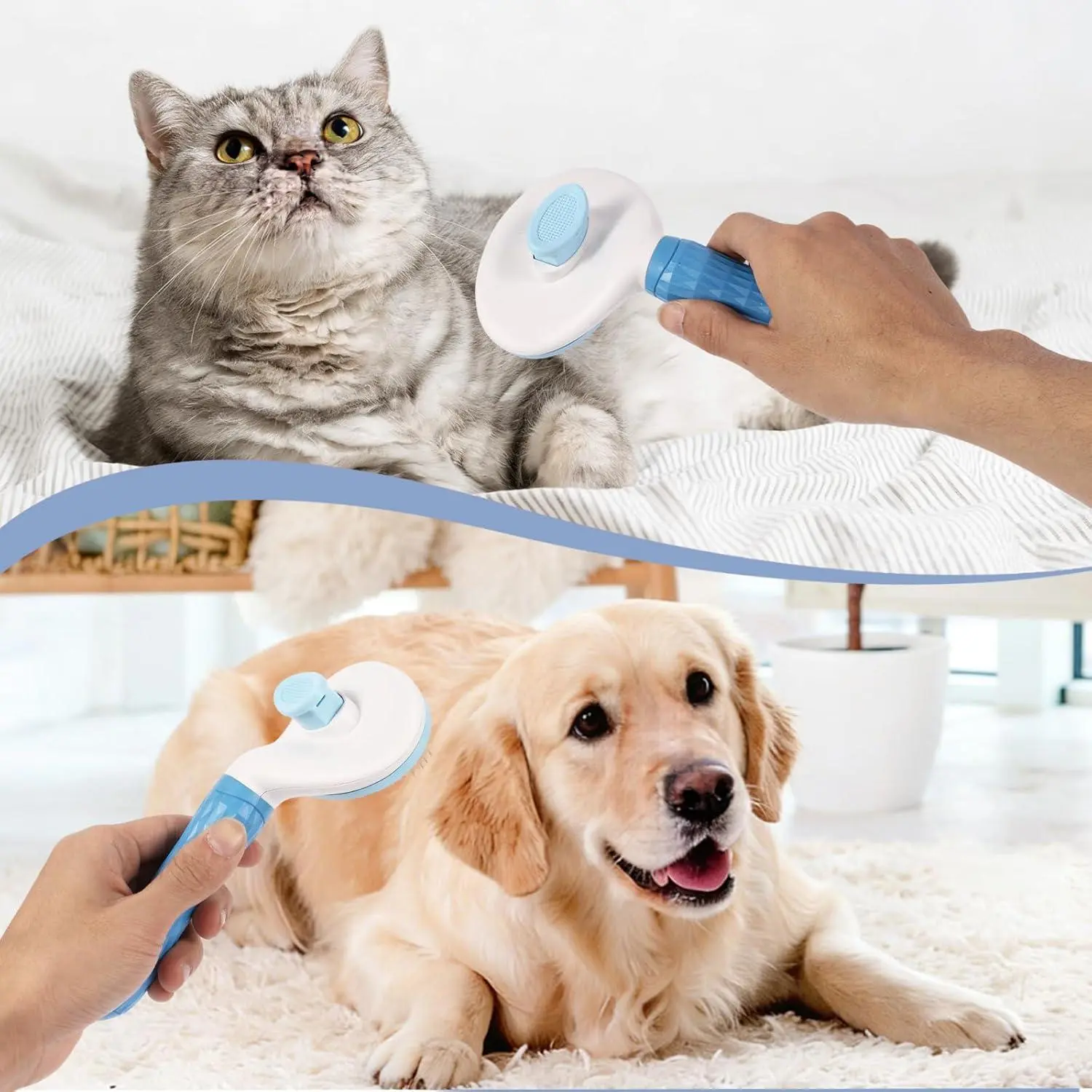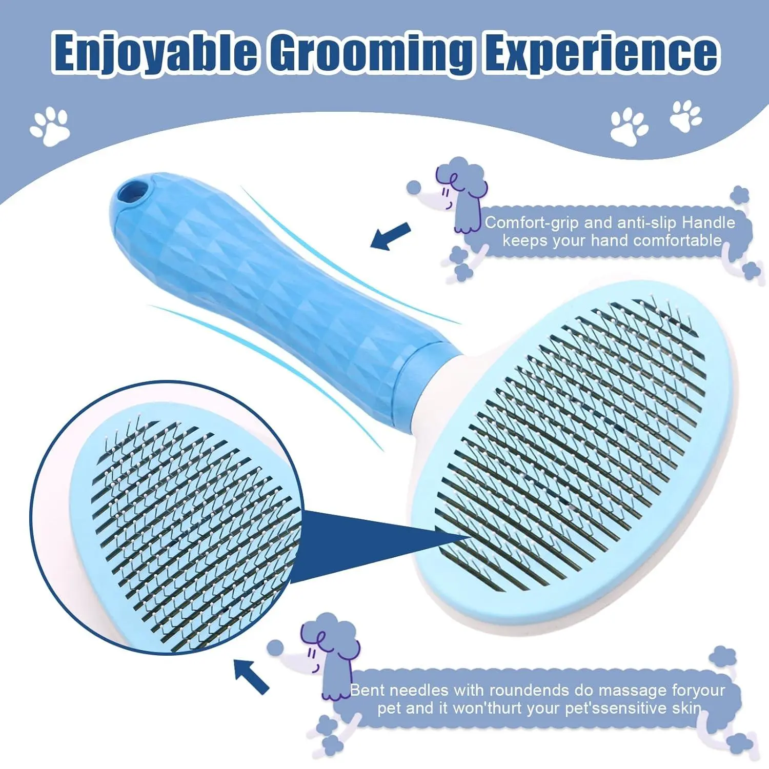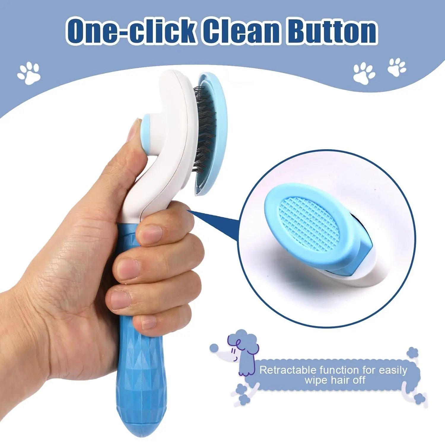 Self Cleaning Slicker Brush, Dog Cat Bunny Pet Grooming Shedding Brush - Easy to Remove Loose Undercoat, Pet Massaging Tool Suitable for Pets with Long or Short Hair (Blue)