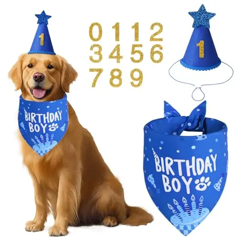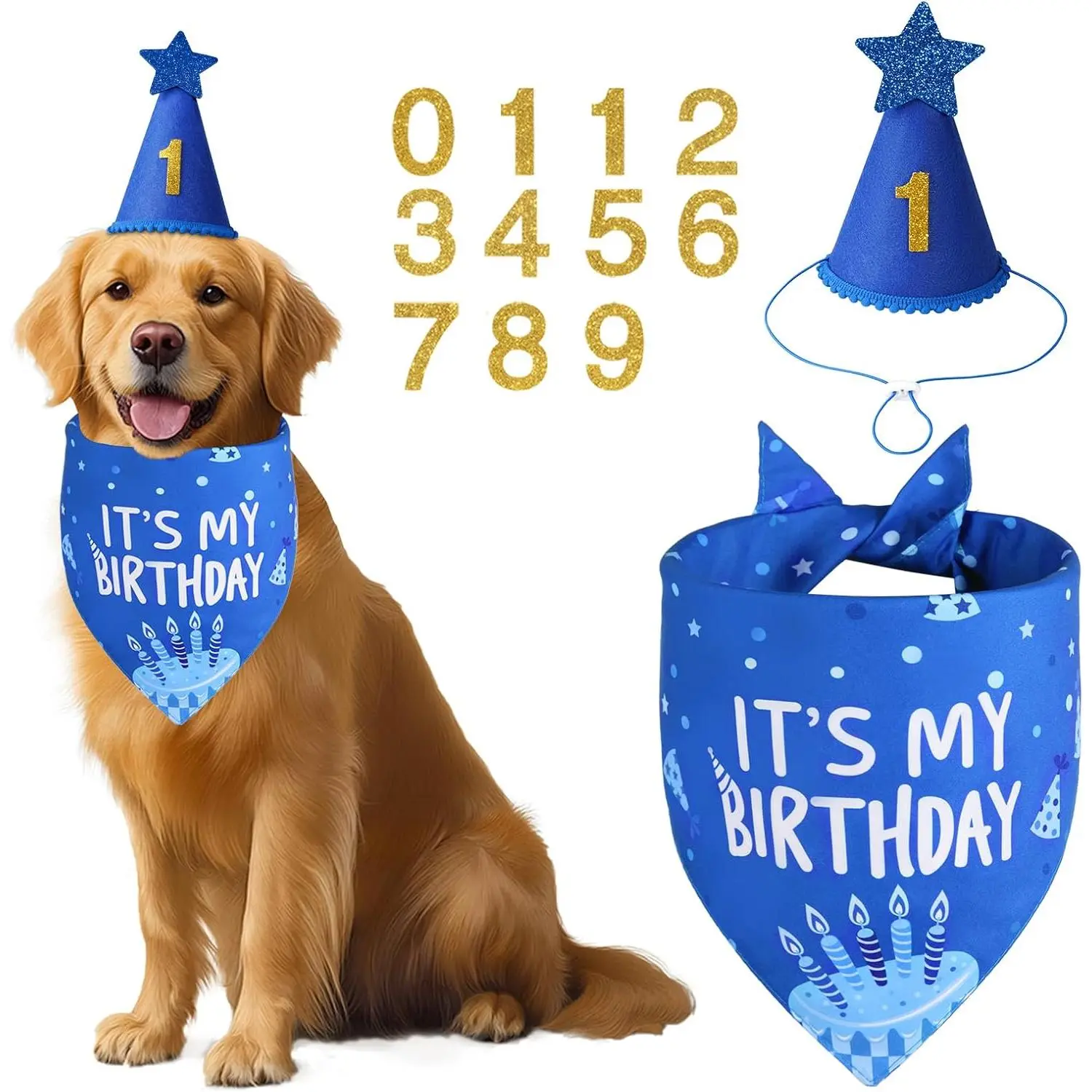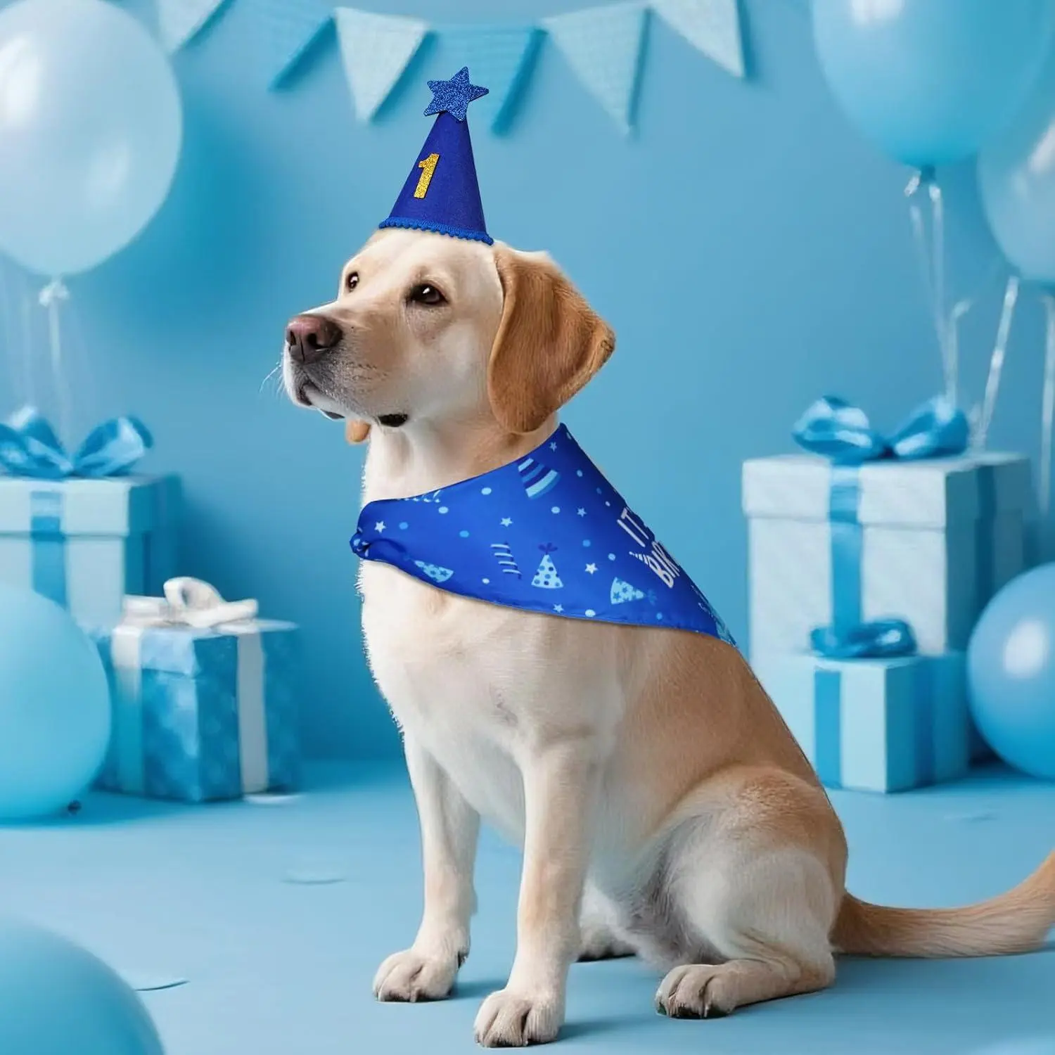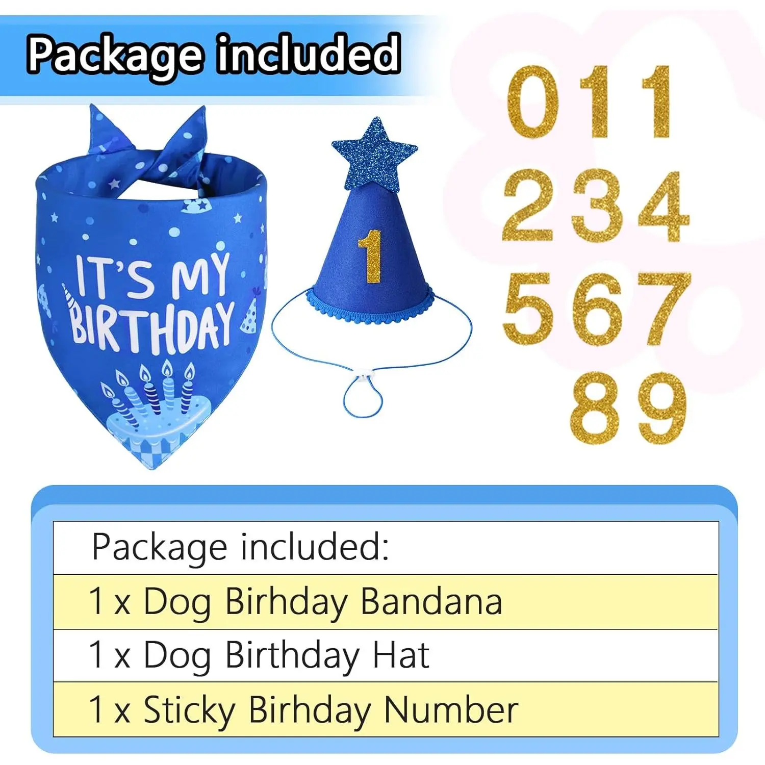 Dog Birthday Party Supplies, Blue Dog Birthday Set with Hat Bandana Numbers for XLarge Large Boy Pets Puppy