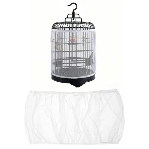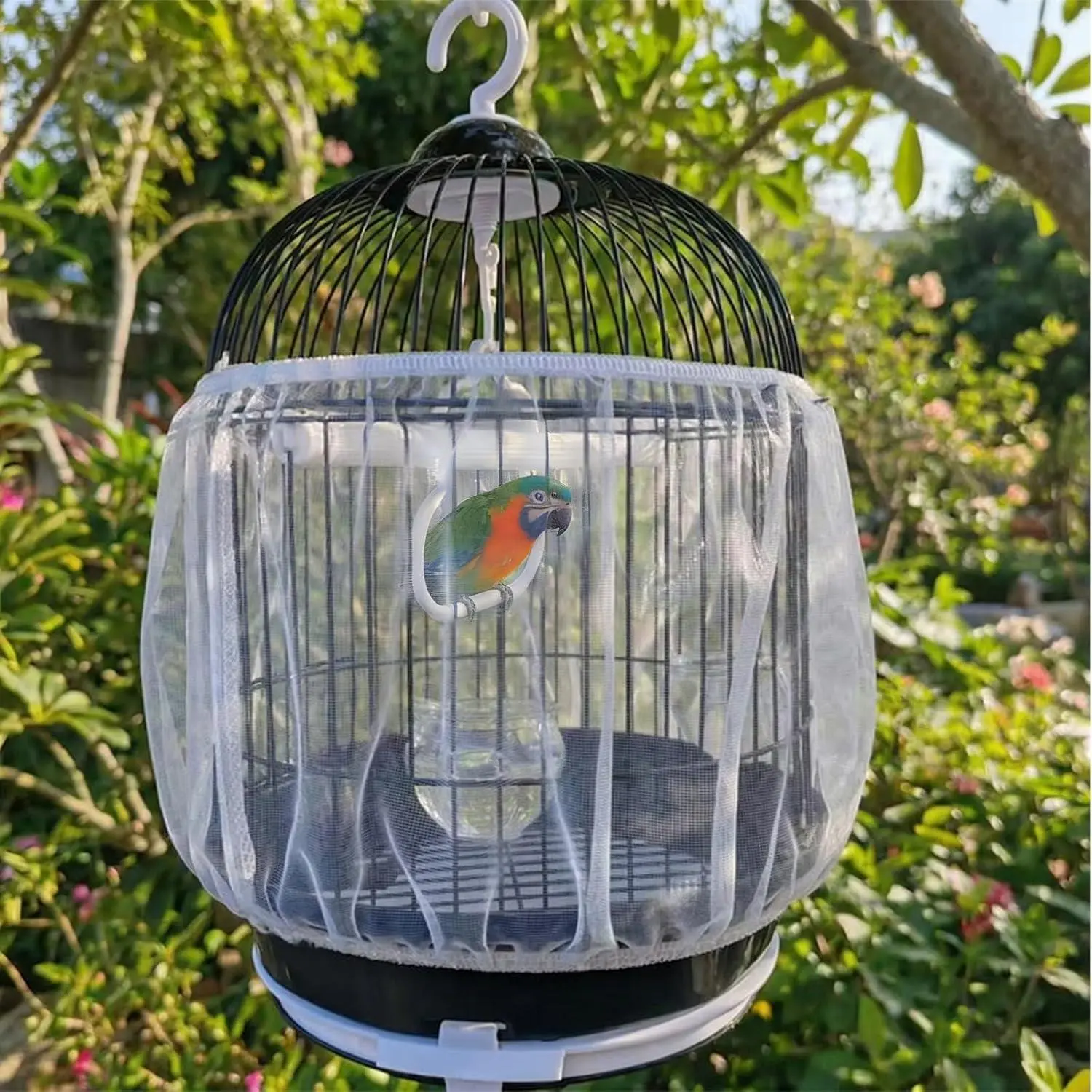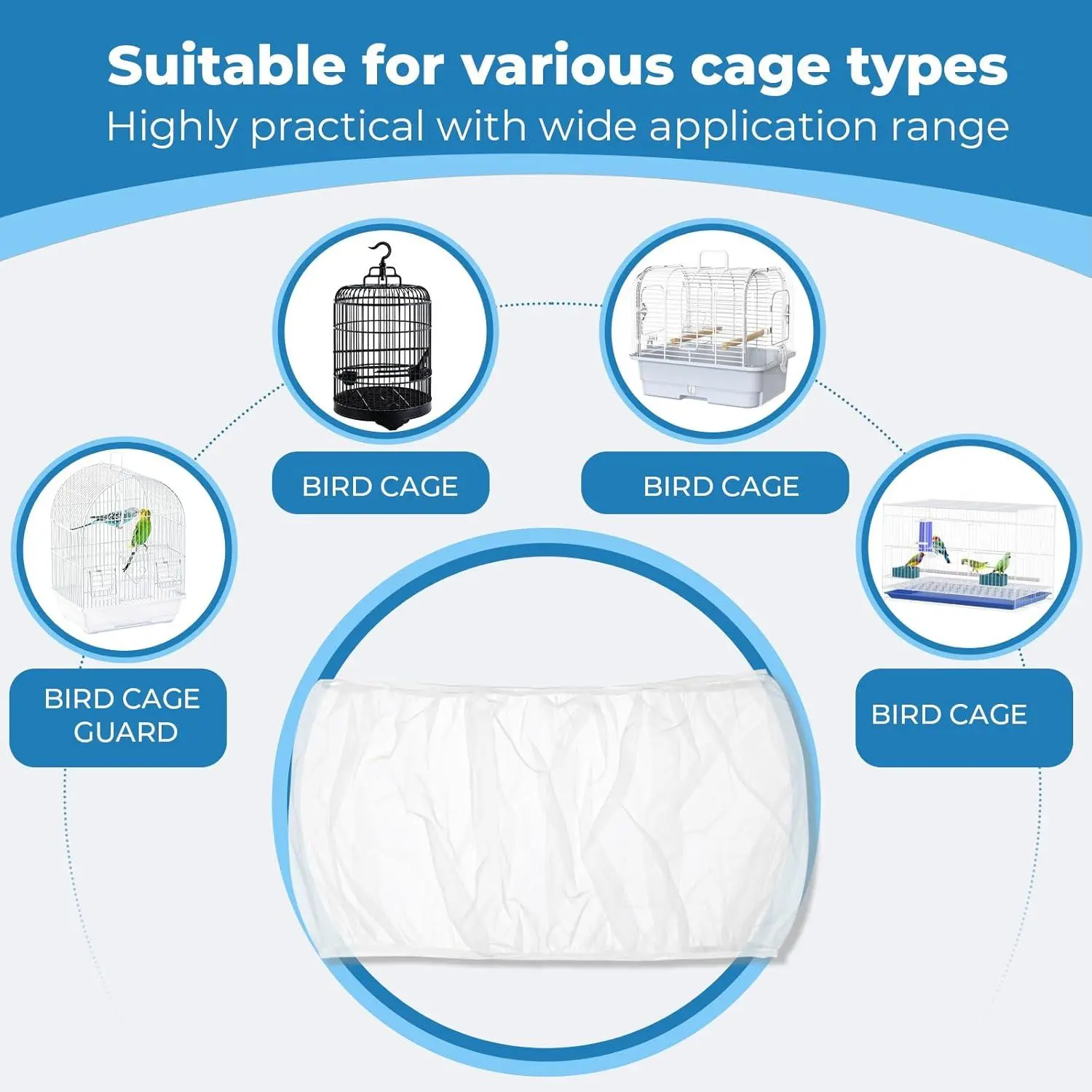 2 Pcs Bird Cage Seed Catcher, Adjustable Bird Cage Net Cover, Reusable Soft Nylon Cover for Parrot Enclosures (White)