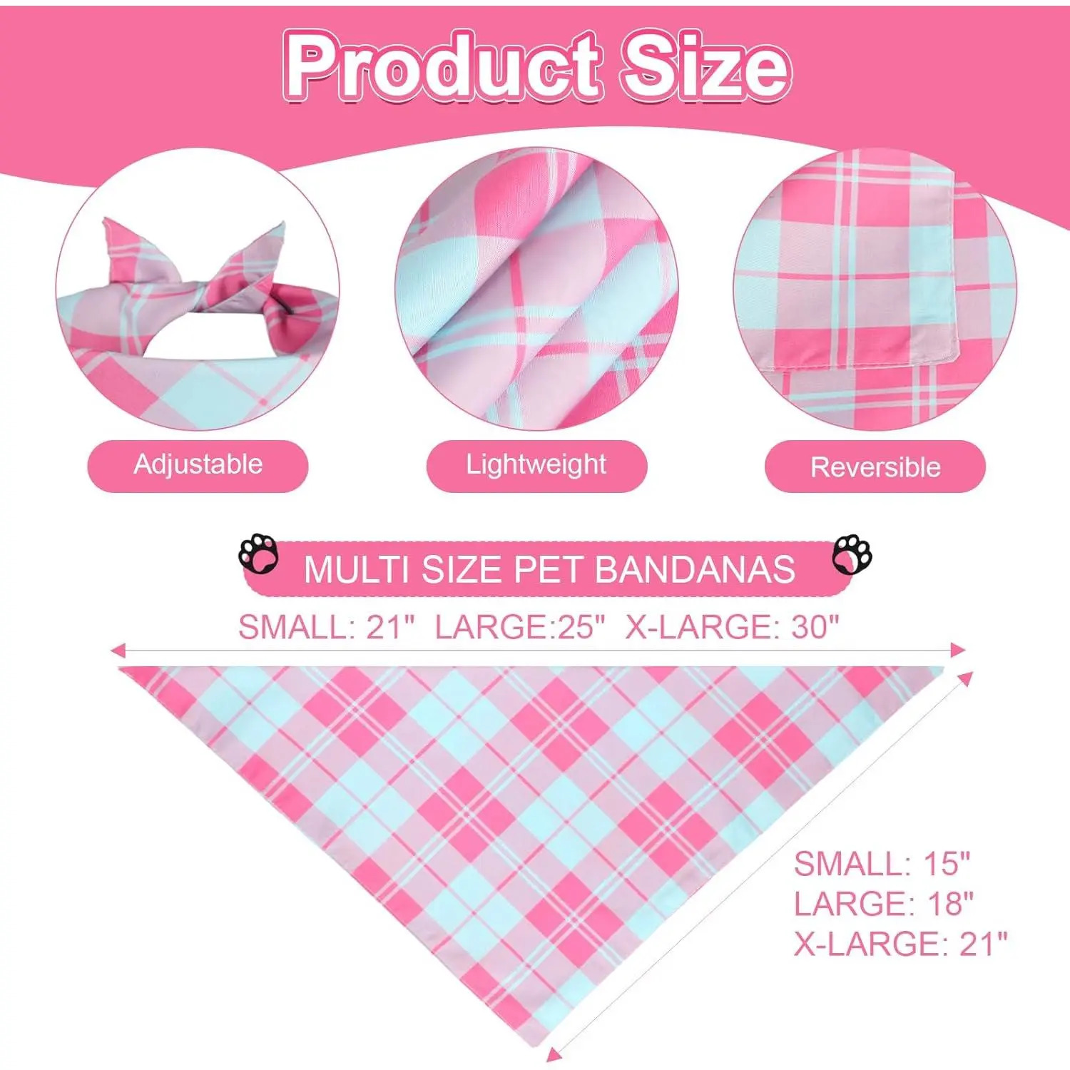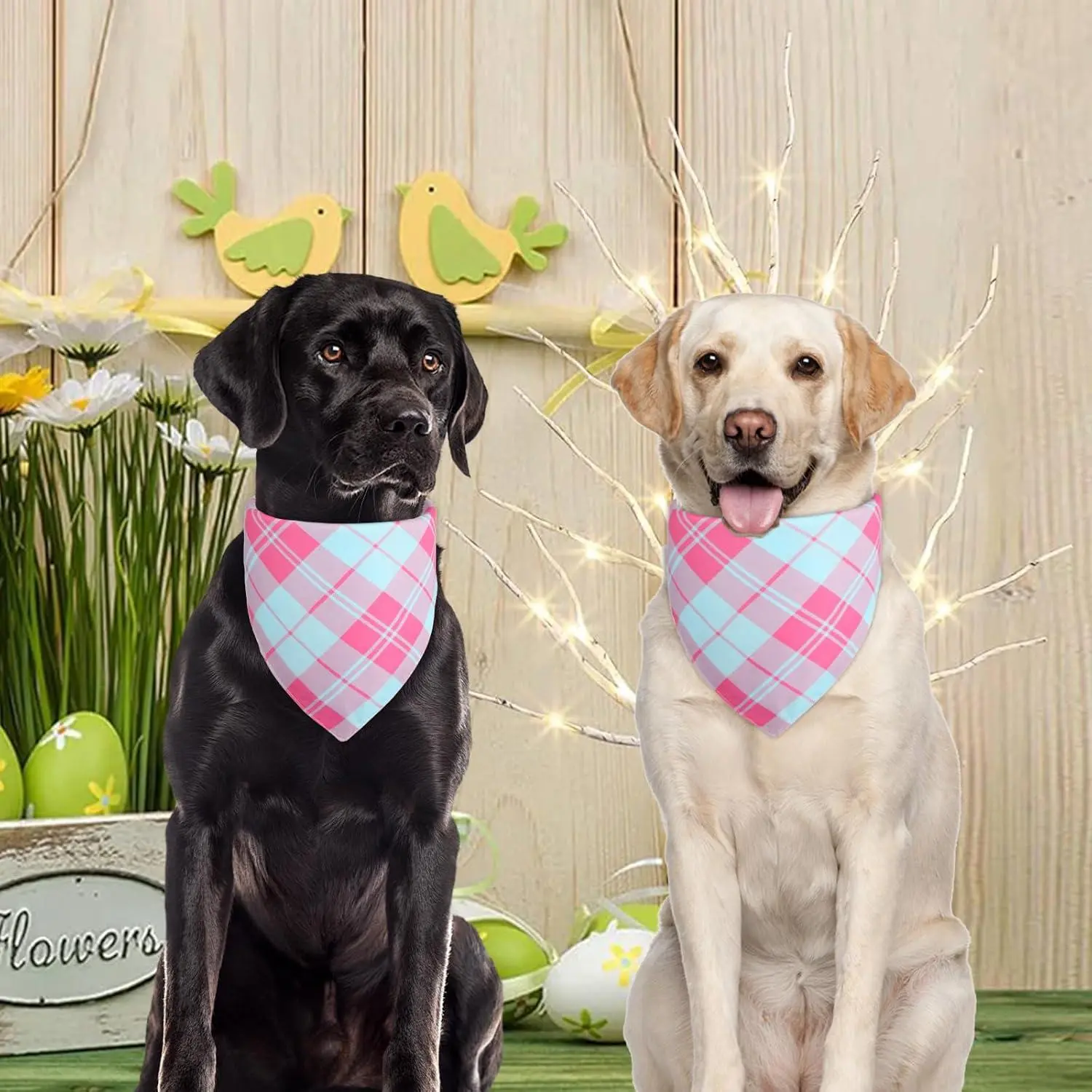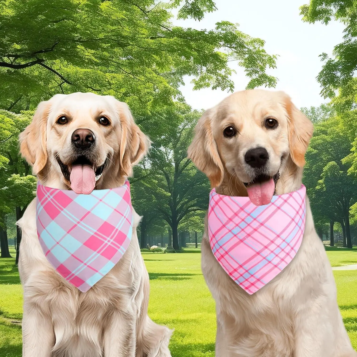 Pink Dog Bandana Girl Large 2PCS, Summer Spring Scarf, Durable Triangle Reversible Bibs Handkerchief for Puppy Pet
