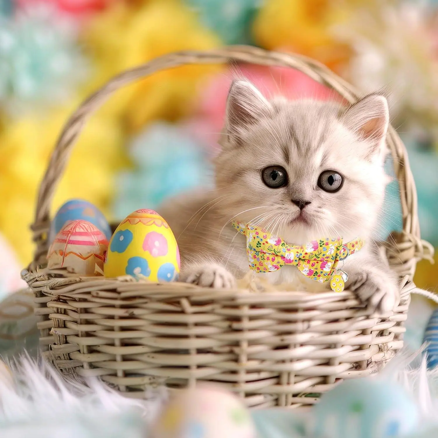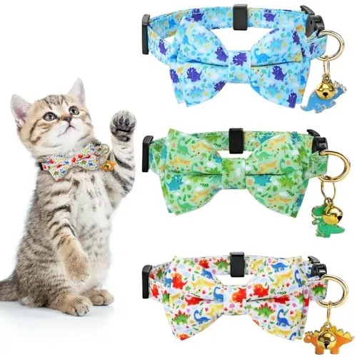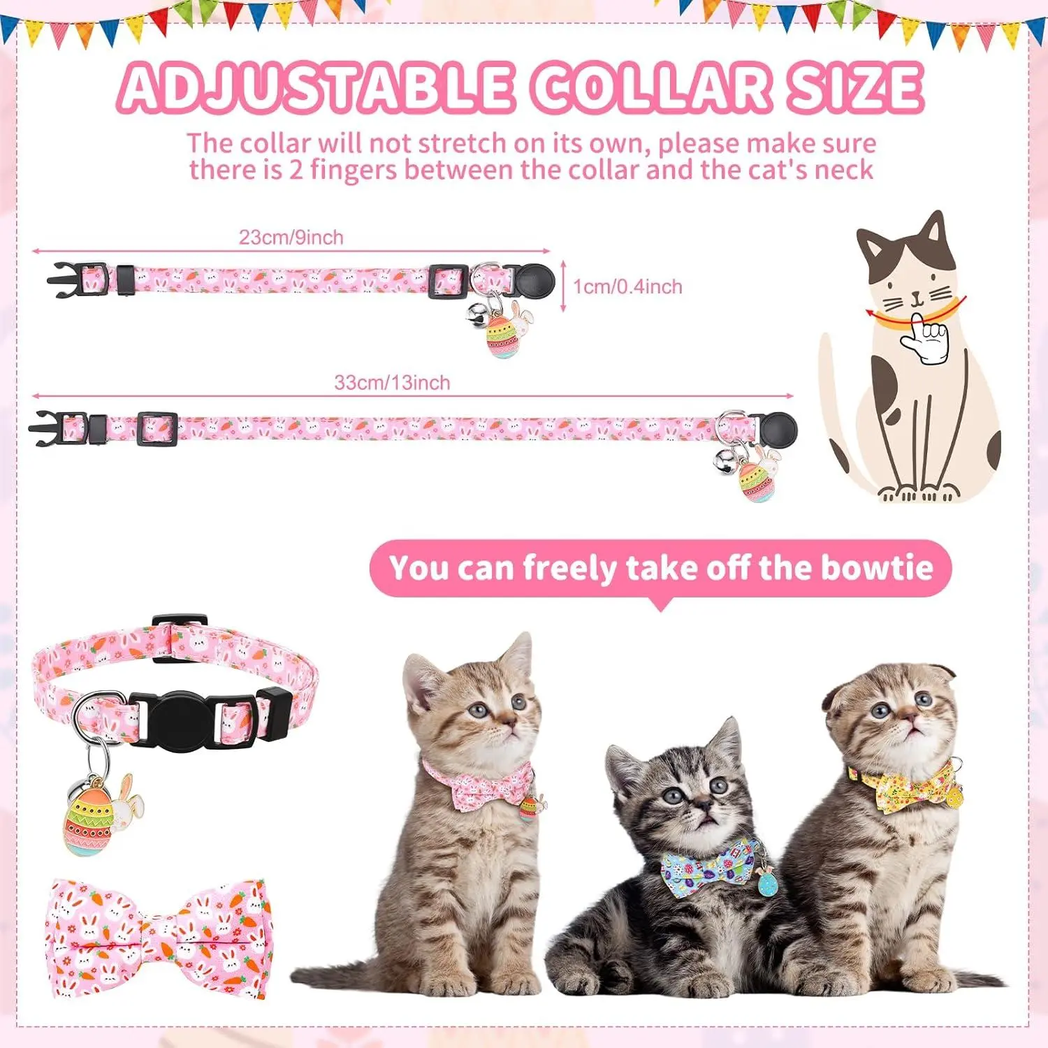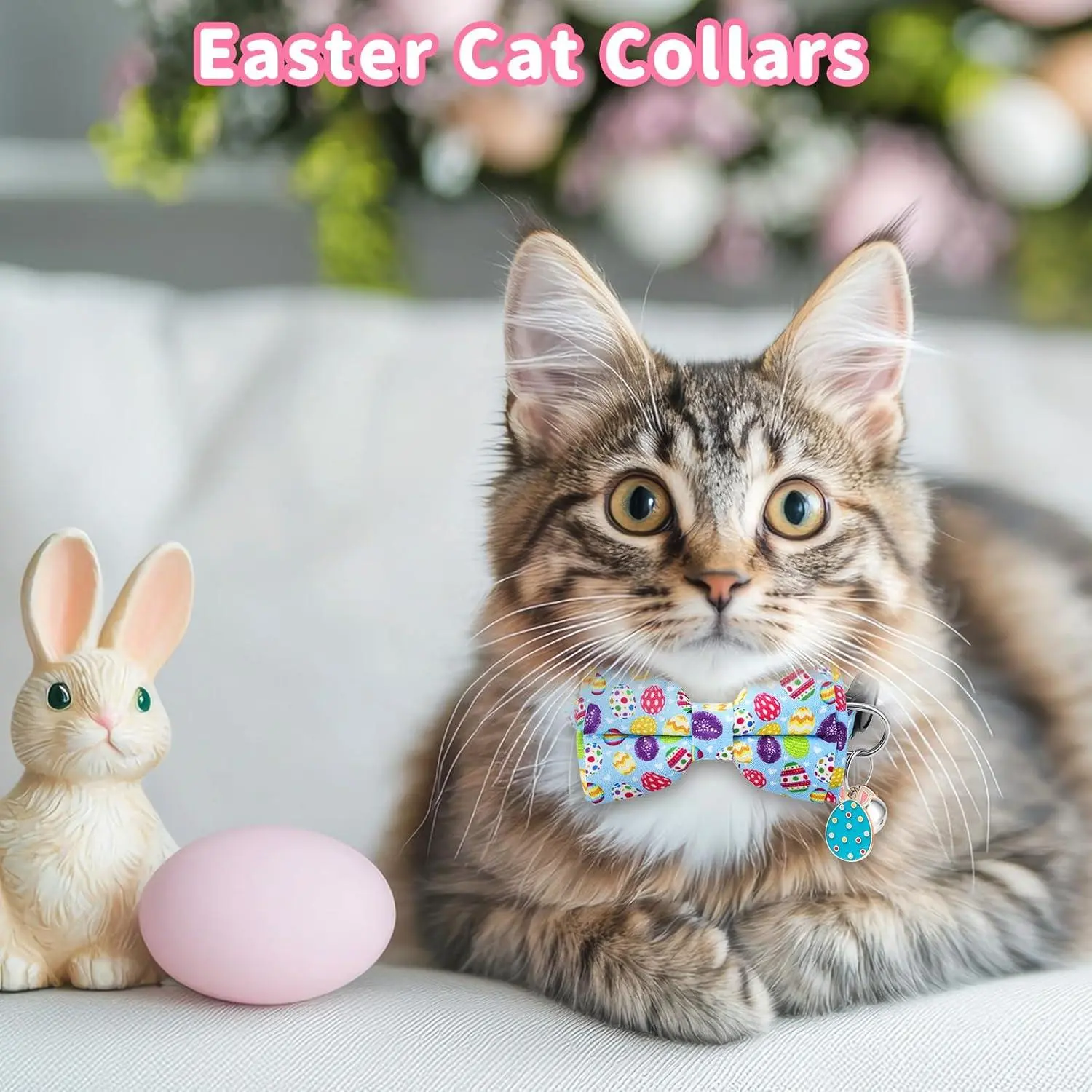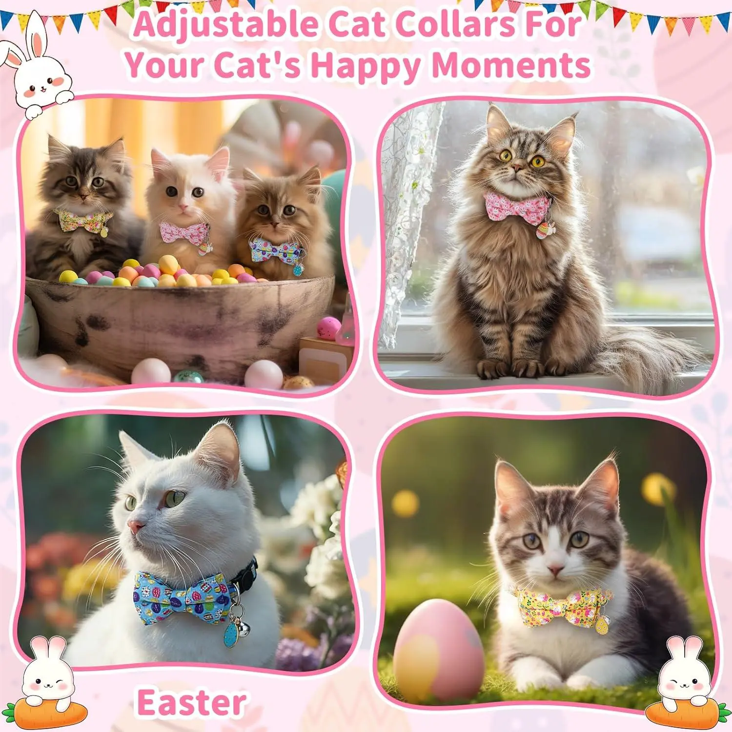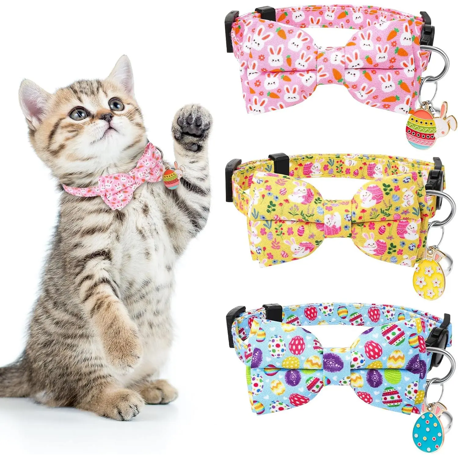 3 PCS Easter Cat Collars with Bow Tie and Bell, Spring Cat Collars Eggs Rabbit Pattern Breakaway Adjustable Cat Bow Tie Collars, Cute Bow Tie Suitable for Kittens Or Certain Puppies