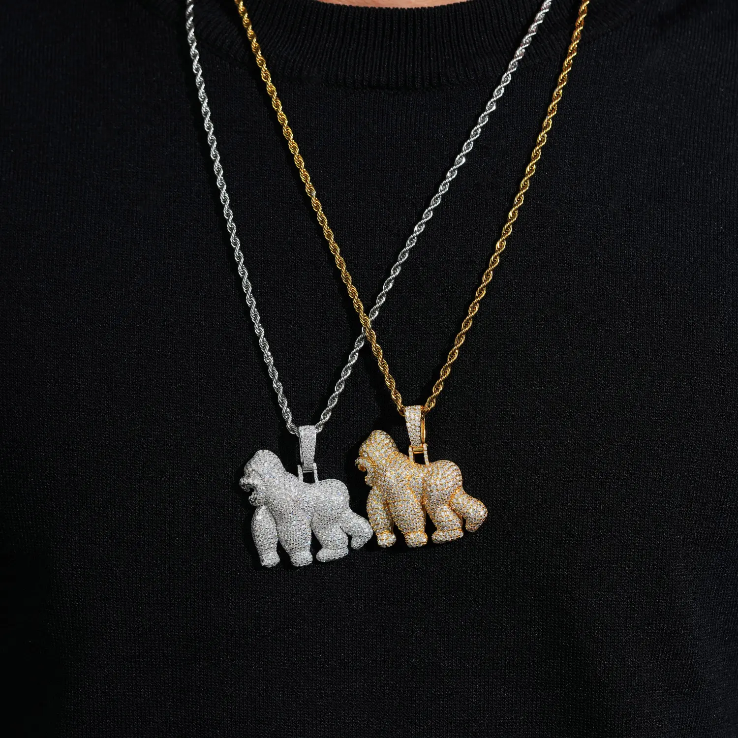 The 5A+ grade Sri Lanka Moissanite stones are expertly set in a striking gorilla pendant, capturing brilliant sparkle. Inspired by global street fashion, this pendant blends a fierce motif with high-end details for a standout style. Ideal for casual outings, nightlife, and daily wear. 🌟