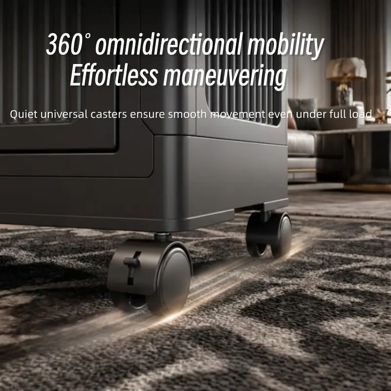 This storage cabinet features casters for easy mobility, making it convenient to reposition as needed. The black color adds a sleek touch to any decor. Whether you're in a bedroom, living room, or kitchen, this cabinet provides a practical solution for storage and organization. Keep your space tidy and clutter-free with this innovative design.
