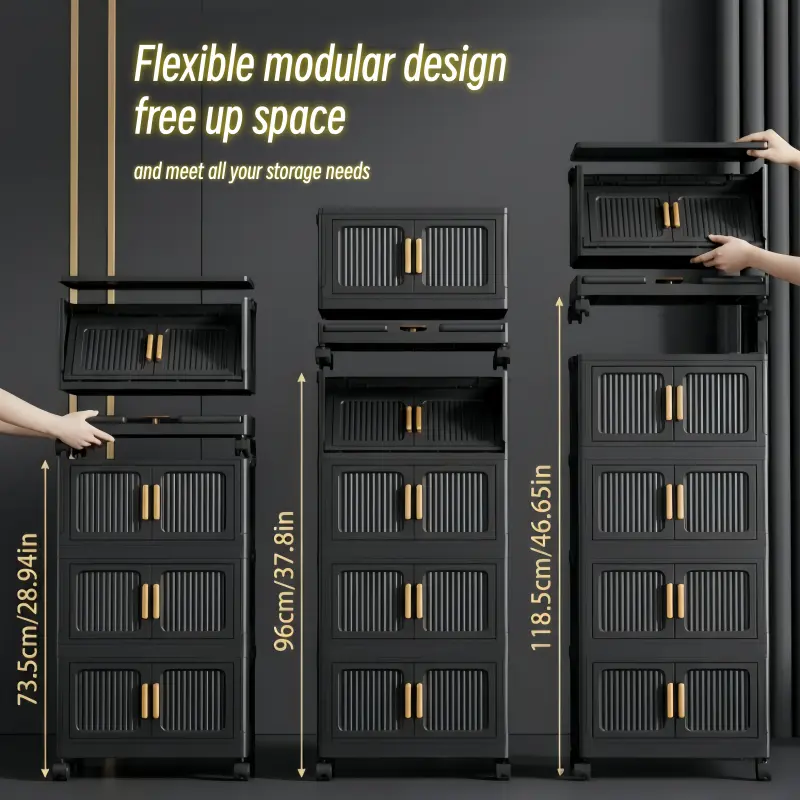 Elevate your storage game with this versatile 3/4/5-tier foldable storage cabinet. Perfect for bedrooms, living rooms, and kitchens, it offers multi-functional storage solutions. The stackable plastic boxes come with lids, ensuring your items stay organized and secure. Ideal for maximizing space in any room, this cabinet is a must-have for efficient storage.