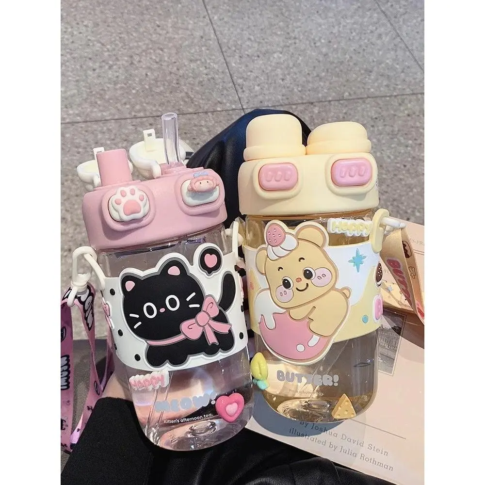 Cartoon Kawaii Kids Capybara Water Bottle With Straps and Straws One Cup for School and Festivals for Children Back To School