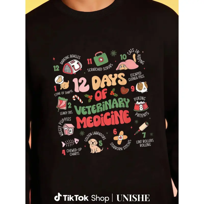 Long Sleeve Funny Christmas Vet Tech Shirt – 12 Days of Veterinary Medicine Theme