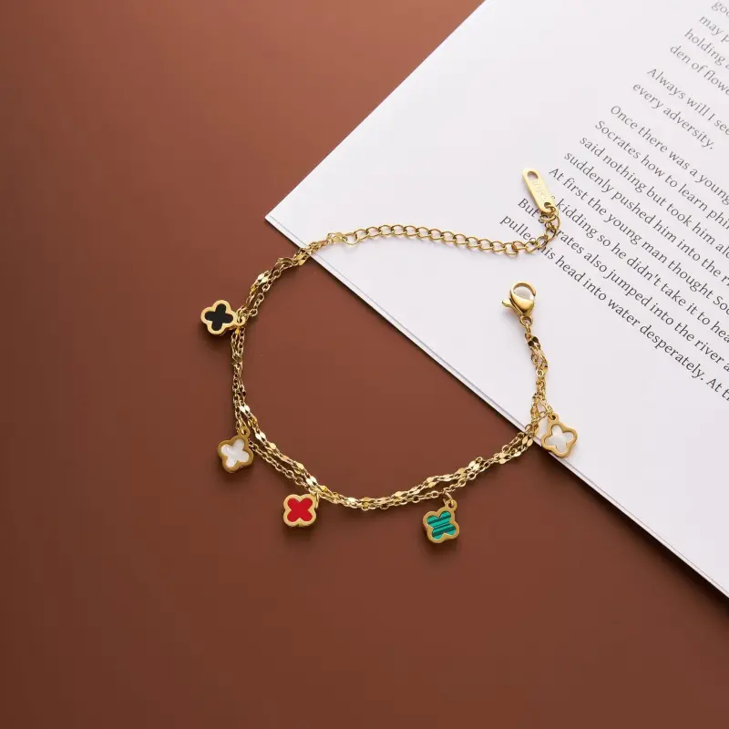 SL134 Colorful Four-Leaf Clover Bracelet, GoldSL134 Colorful Four-Leaf Clover Bracelet, Gold