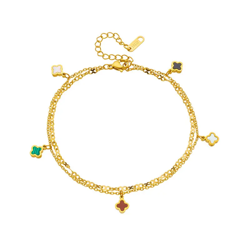 Color:JL134 Colorful Four-leaf Clover Anklet