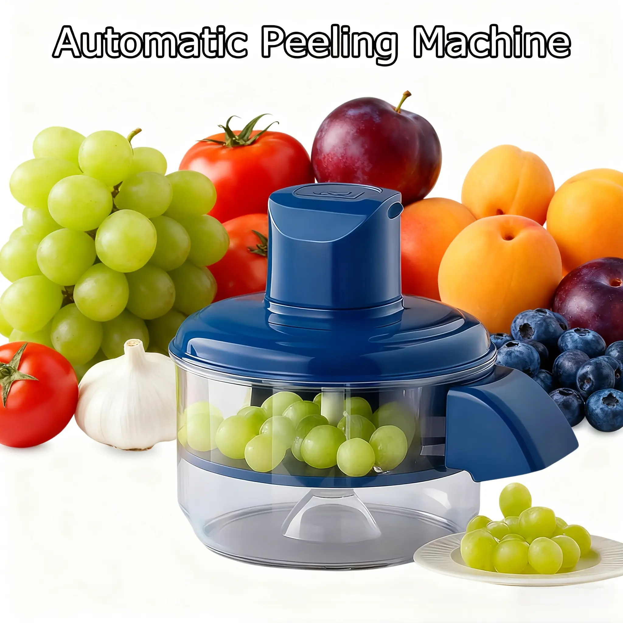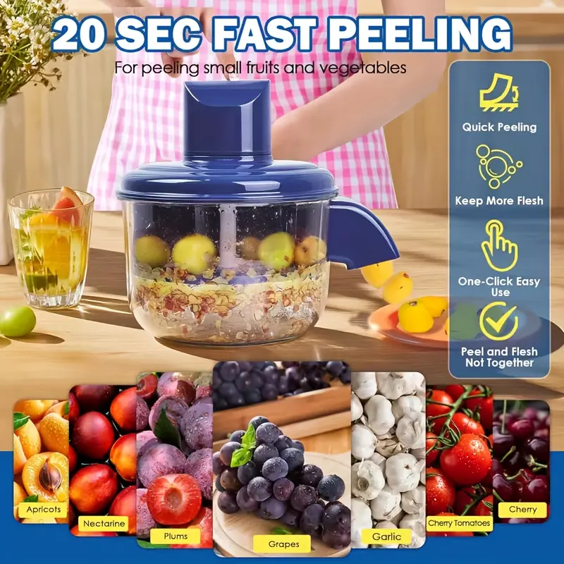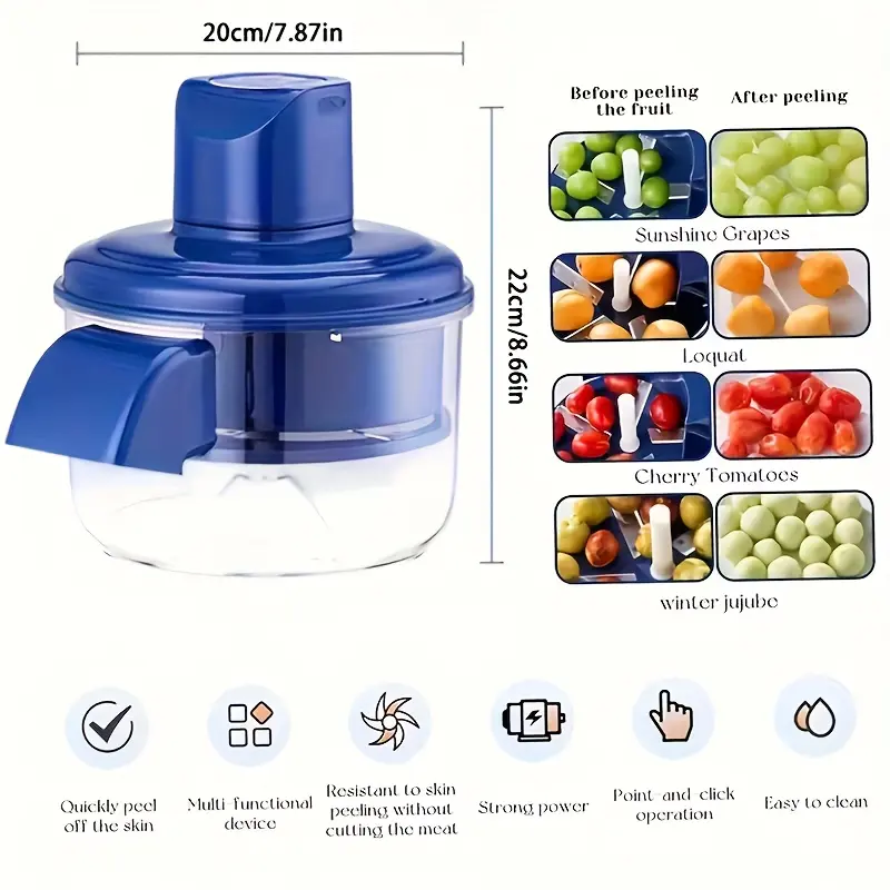 Automatic Electric Grape Peeler Machine - Rechargeable Wireless Peeling Tool with Fast 20s Peeling for Garlic, Cherry Tomatoes, Small Fruits| Suitable for Home, Commercial Use & Elderly, Easy Clean, Portable Fruit Skin Remover Device