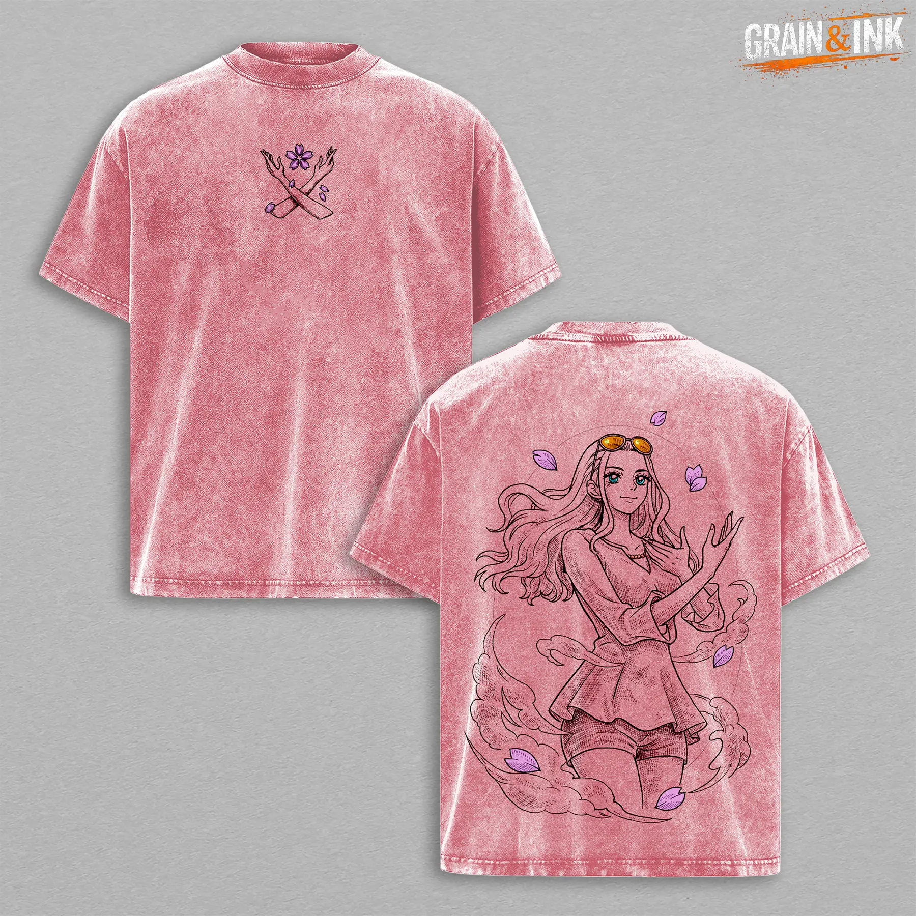 Nico Robin Shirt – One Piece Vintage Acid Washed Oversized Graphic T Shirt, Anime Archaeologist Dark Aesthetic Manga Streetwear, Double Sided Print Heavyweight Cotton Unisex Tee, Gift for Anime Fans